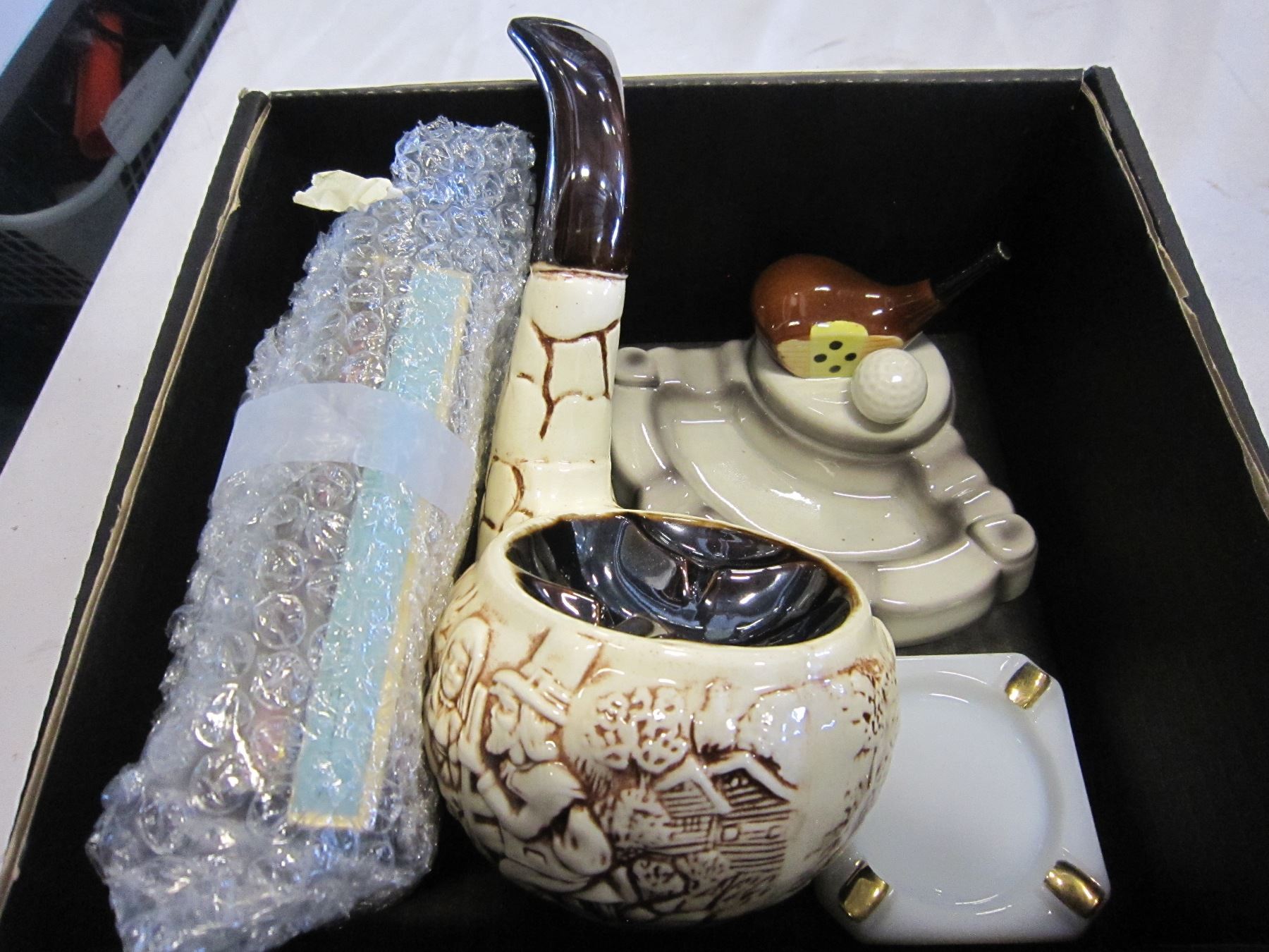 LOT OF TINS, PIPE TRAY, AND GOLF TRAY