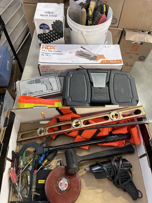 LOT OF TOOLS, TILE CUTTER, GLUE GUN, ETC