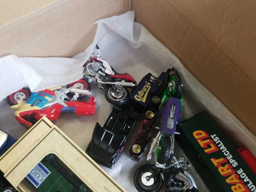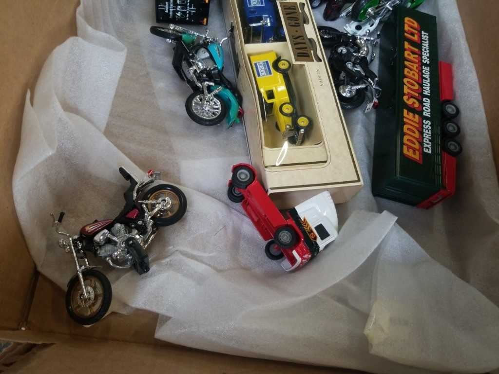 LOT OF TOY AND DIE CAST MOTORCYCLES AND CARS