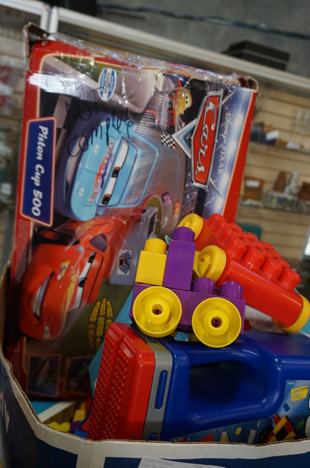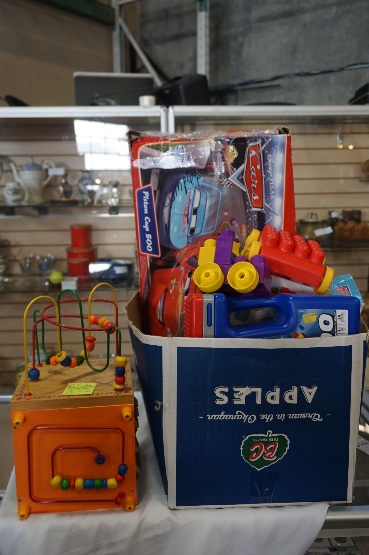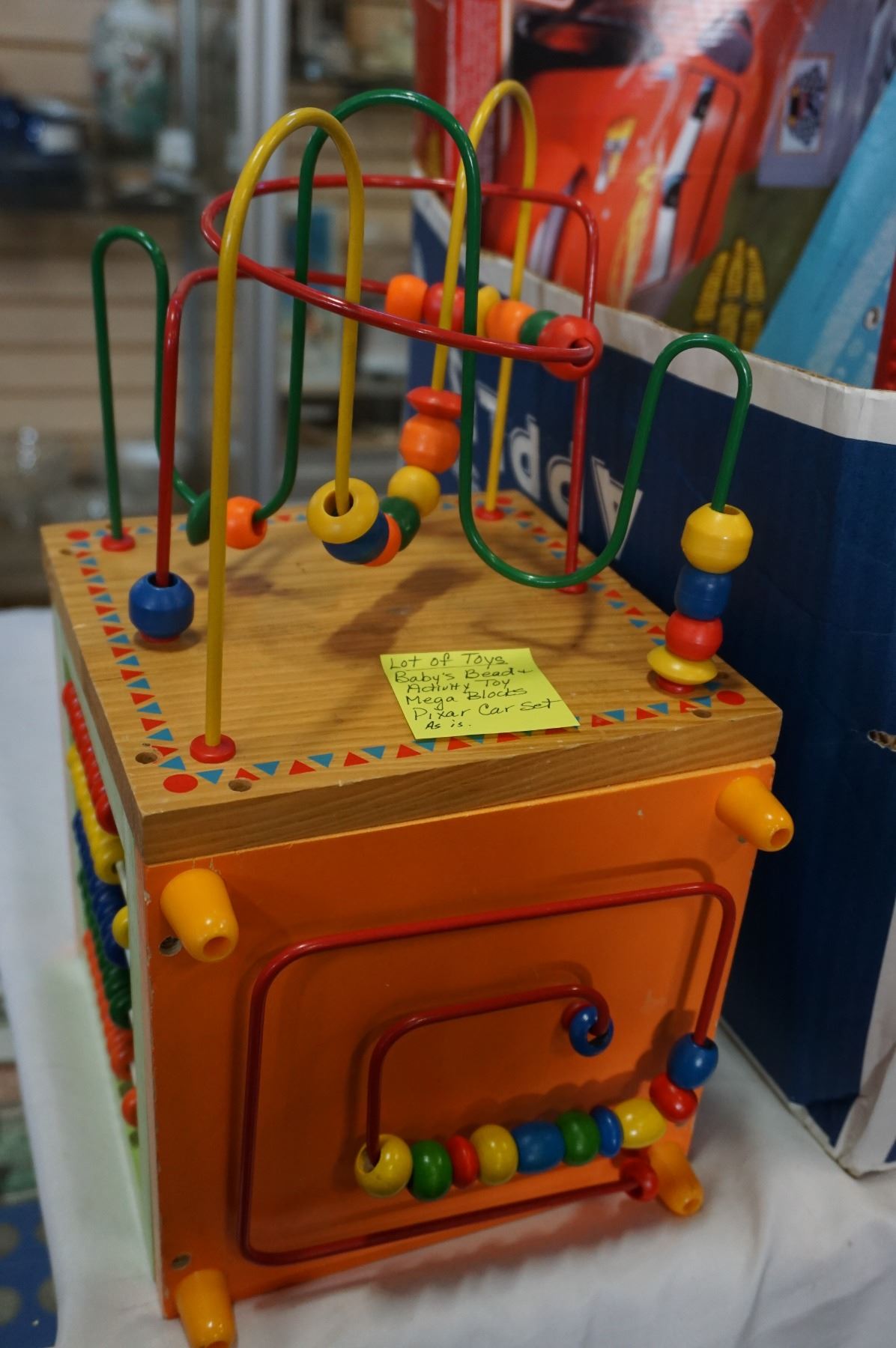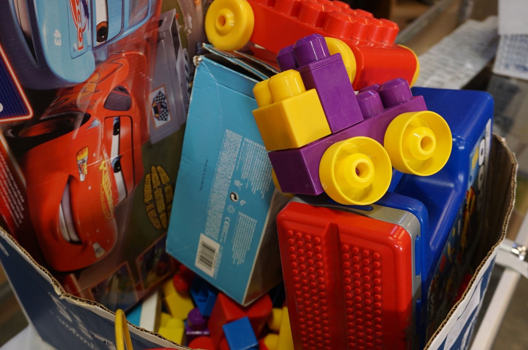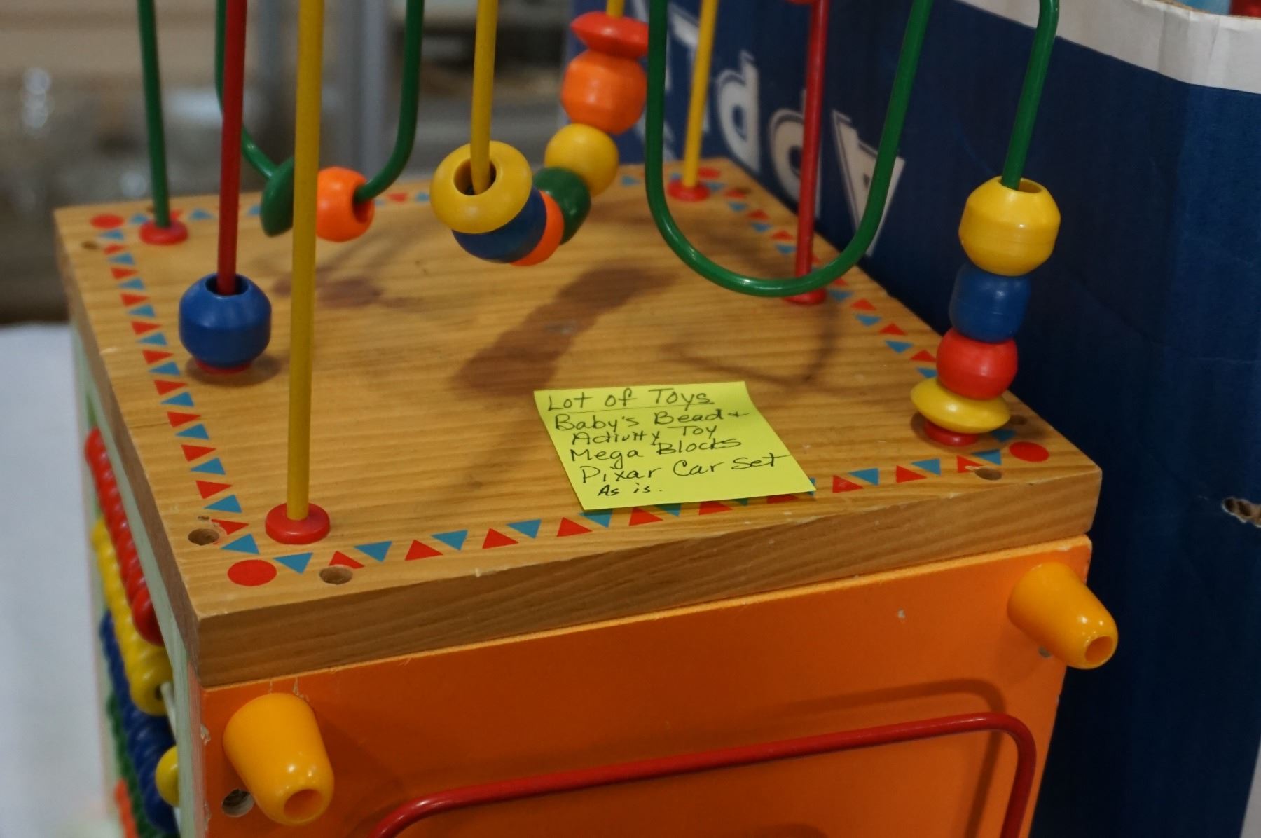 LOT OF TOYS, MEGA BLOCKS, PIXAR CARS SET, WOODEN BABYS BEAD AND ACTIVITY EDUCATIONAL TOY