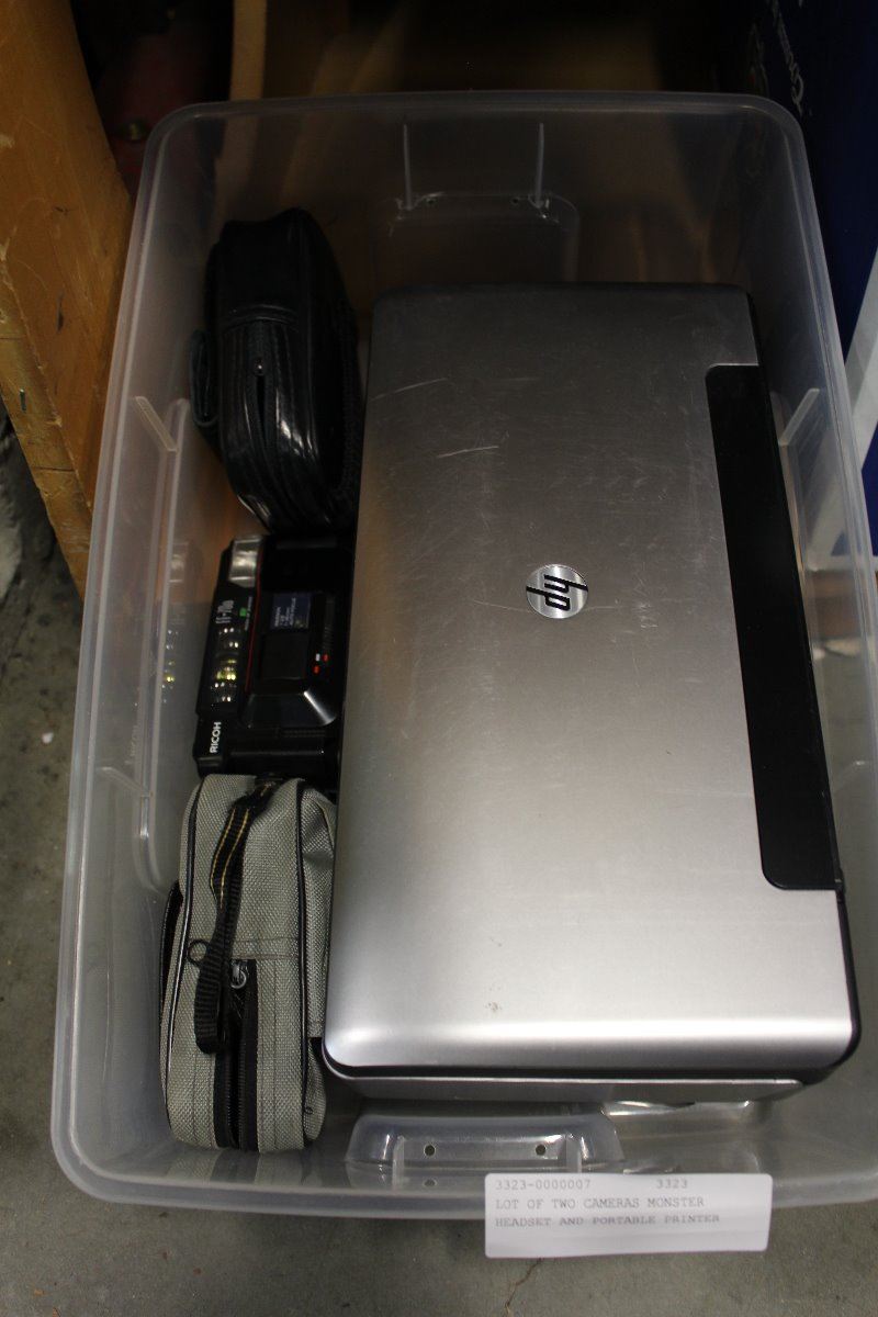 LOT OF TWO CAMERAS MONSTER HEADSET AND PORTABLE PRINTER