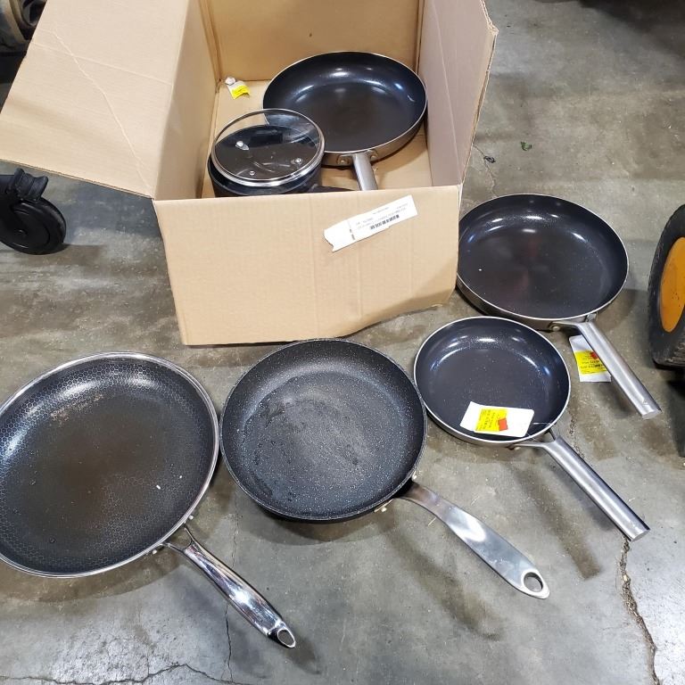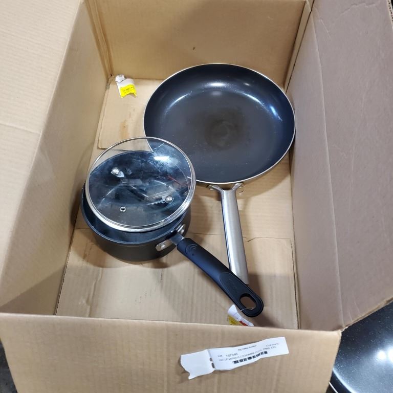 LOT OF VARIOUS COOKWARE POTS, PANS. ETC