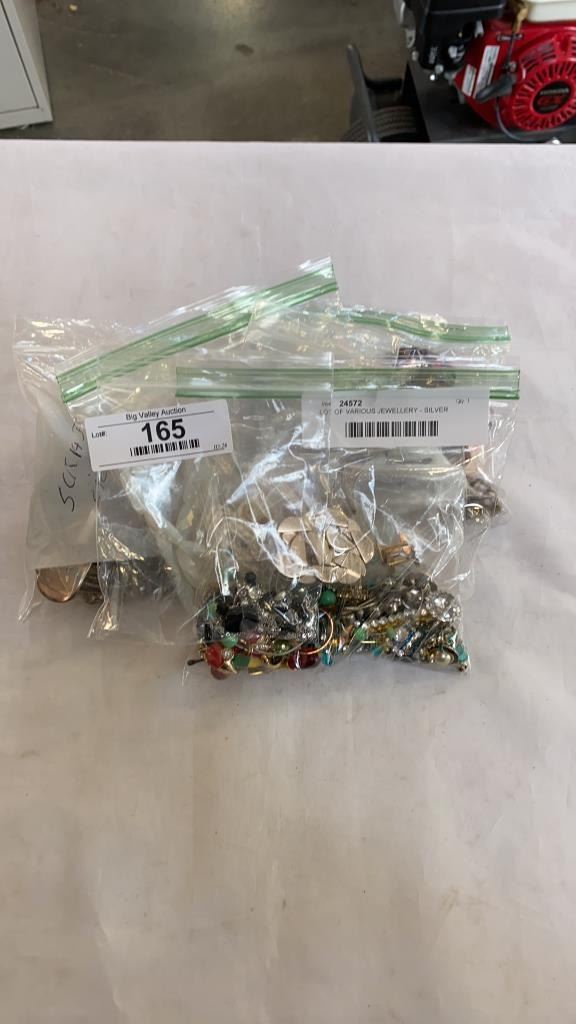 LOT OF VARIOUS JEWELLERY - SILVER PIECES, FRESH WATER PEARL NECKLACE, RINGS, EARRINGS, ETC