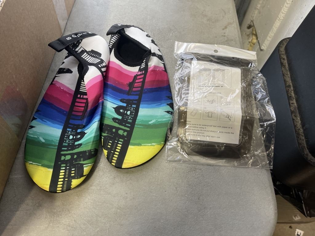 LOT OF VARIOUS WATER SHOES AND WET BAGS