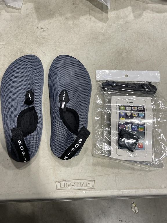 LOT OF VARIOUS WATER SHOES AND WET BAGS