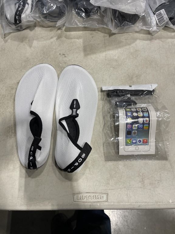 LOT OF VARIOUS WATER SHOES AND WET BAGS