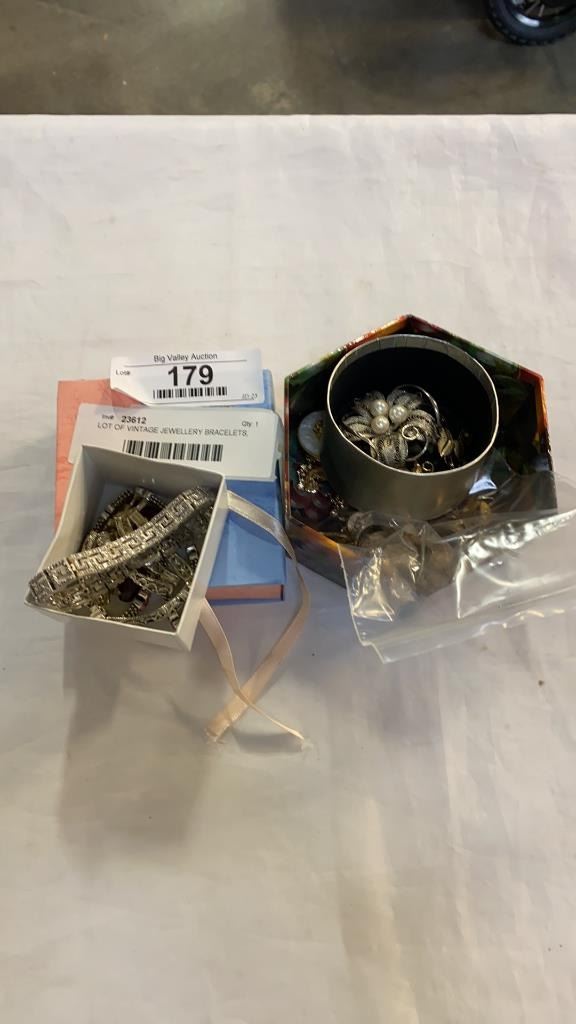 LOT OF VINTAGE JEWELLERY BRACELETS, BROOCHES, ETC