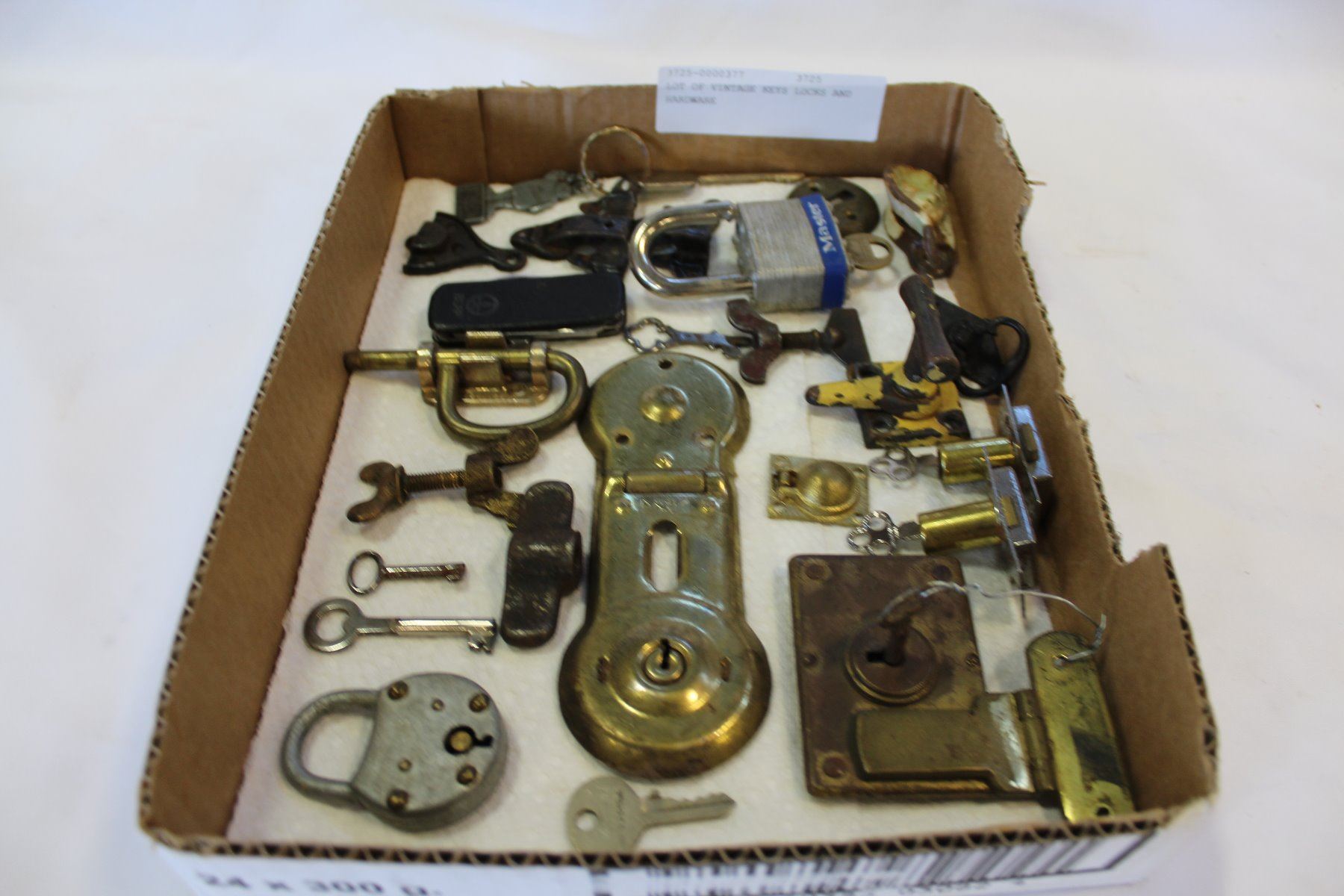 LOT OF VINTAGE KEYS LOCKS AND HARDWARE