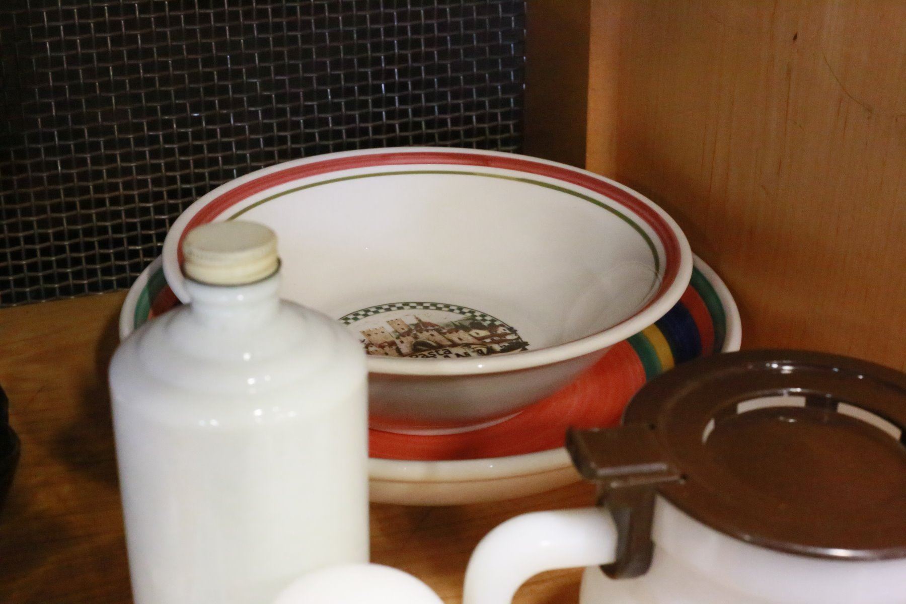 LOT OF VINTAGE KITCHEN WARES AND GLASSWARE