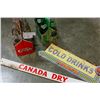LOT OF VINTAGE POP BOTTLES AND CANADA DRY PUSH