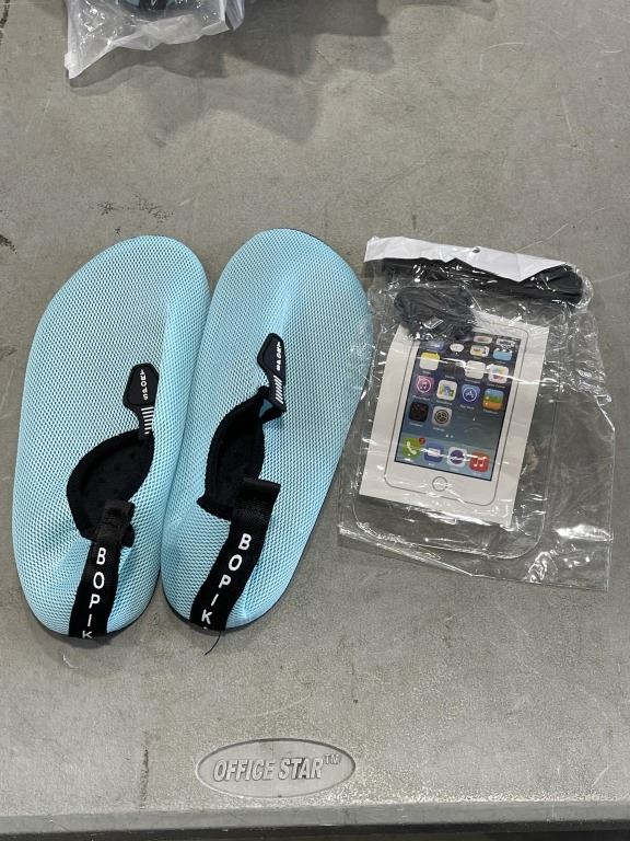 LOT OF WATERSHOES AND PHONE WETBAGS