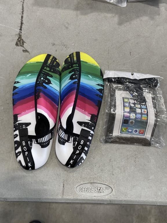 LOT OF WATERSHOES AND PHONE WETBAGS