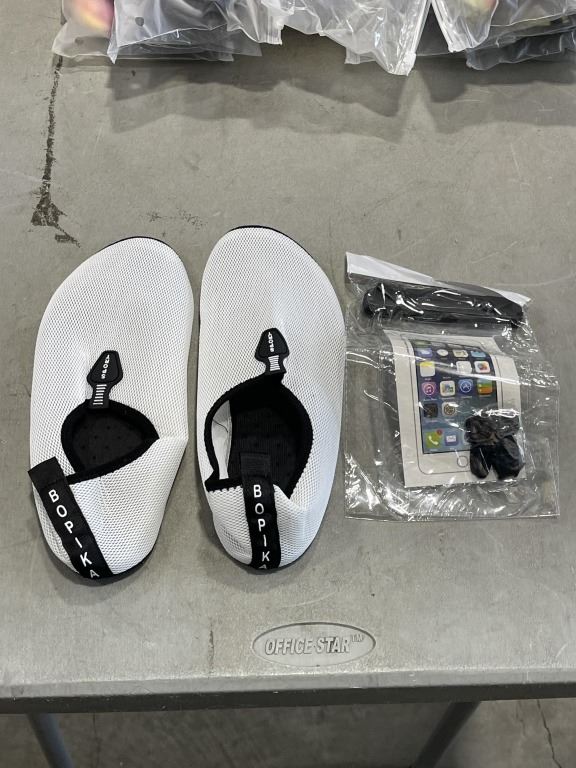 LOT OF WATERSHOES AND PHONE WETBAGS
