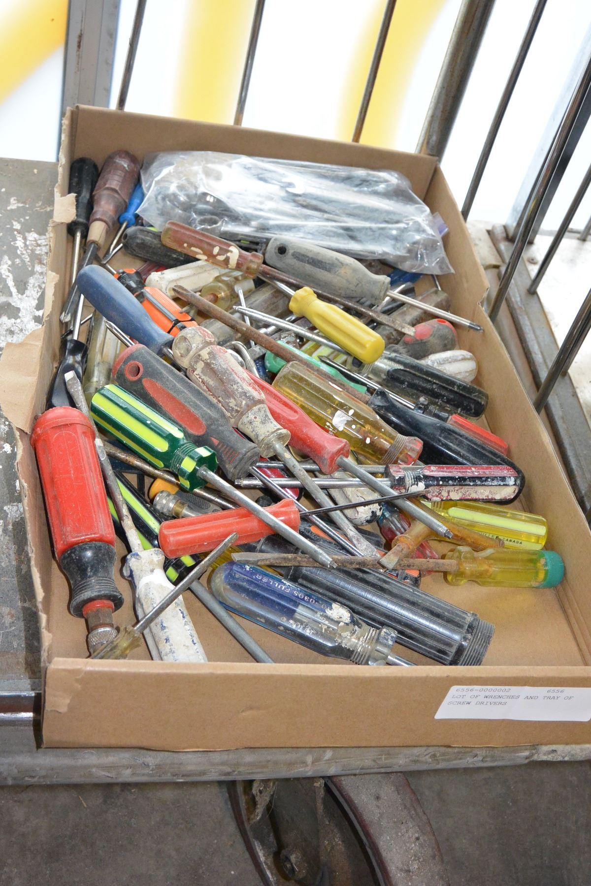 LOT OF WRENCHES AND TRAY OF SCREW DRIVERS