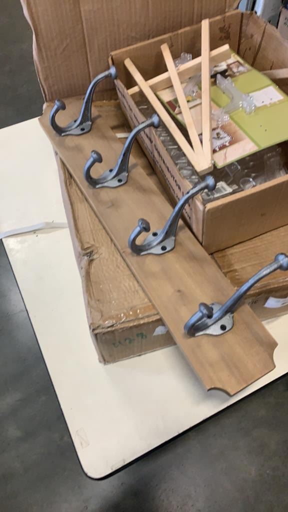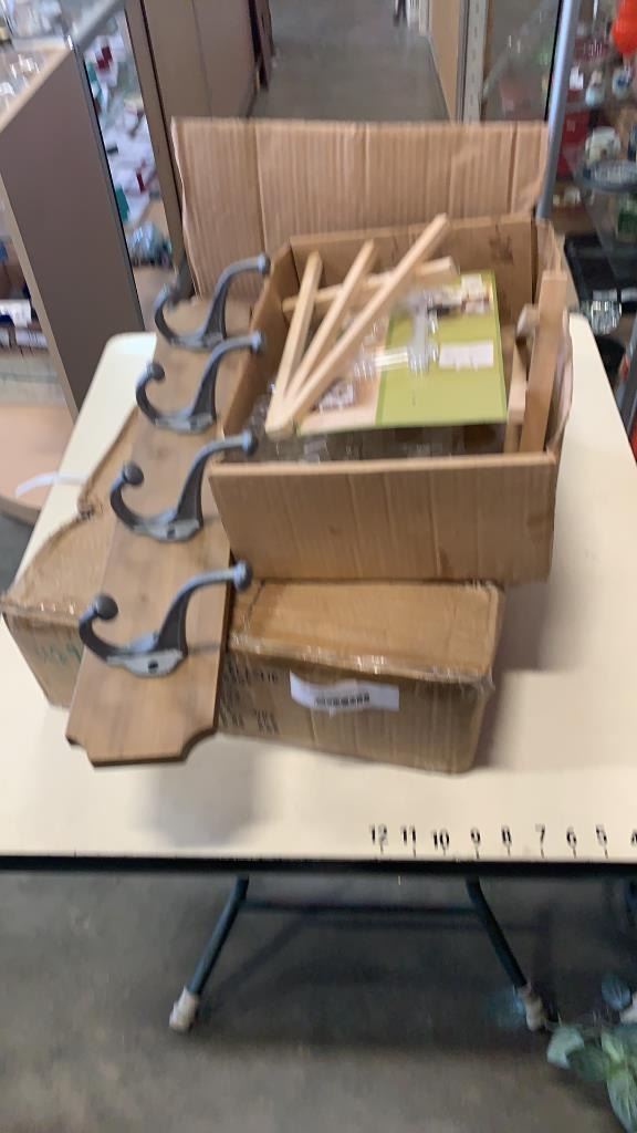 LOT OF ZIPPER BAGS, COAT HANGER, SMALL ART STANDS