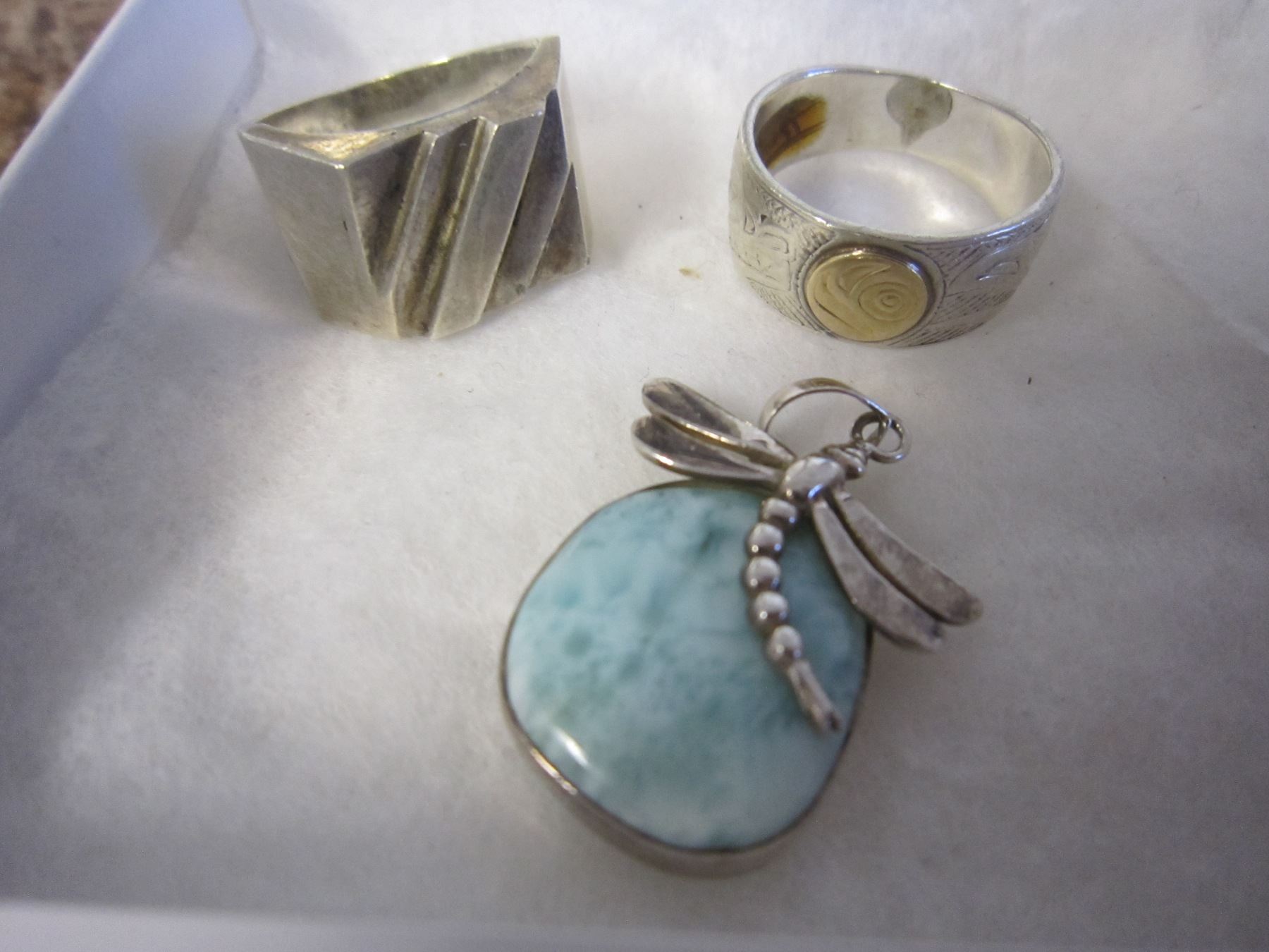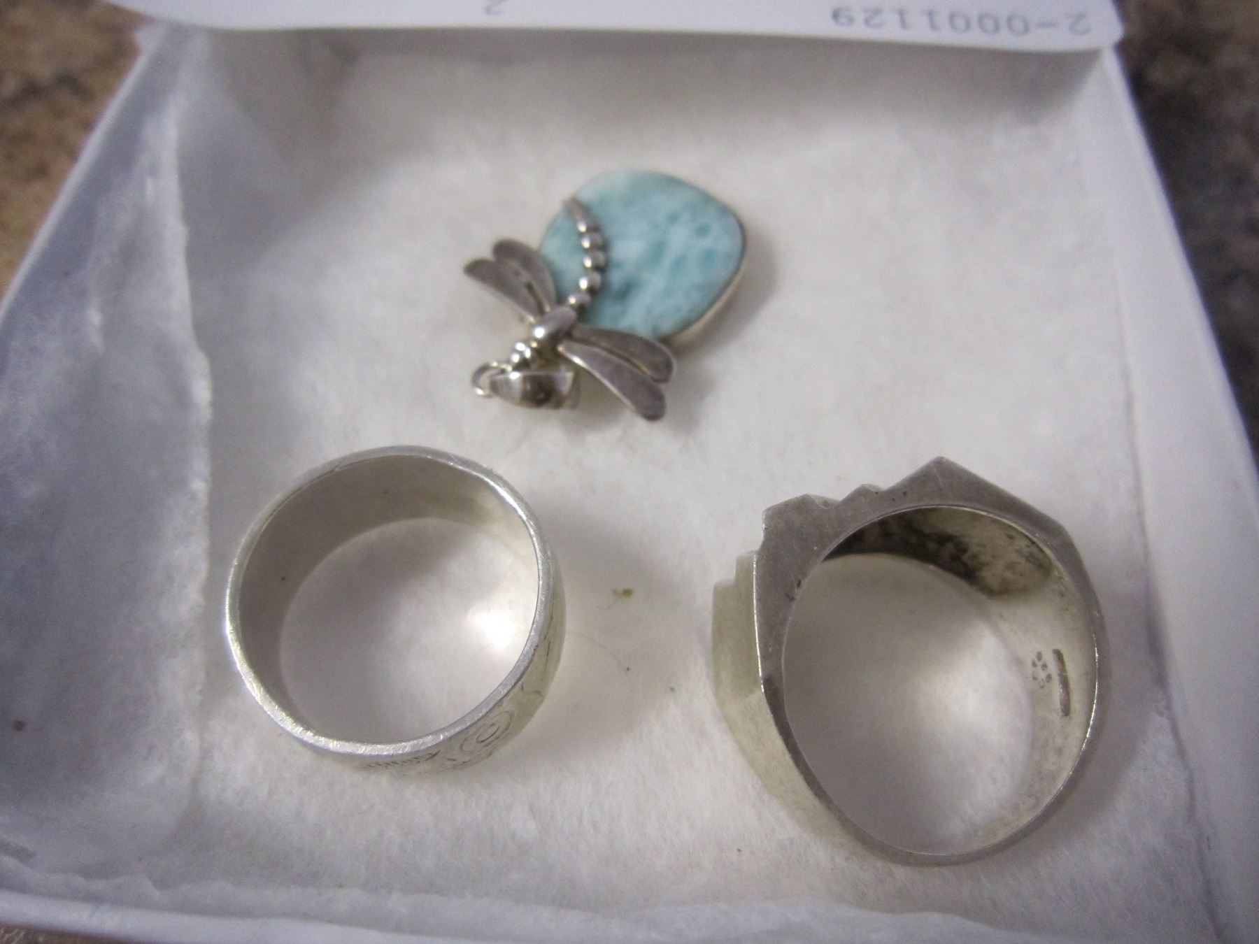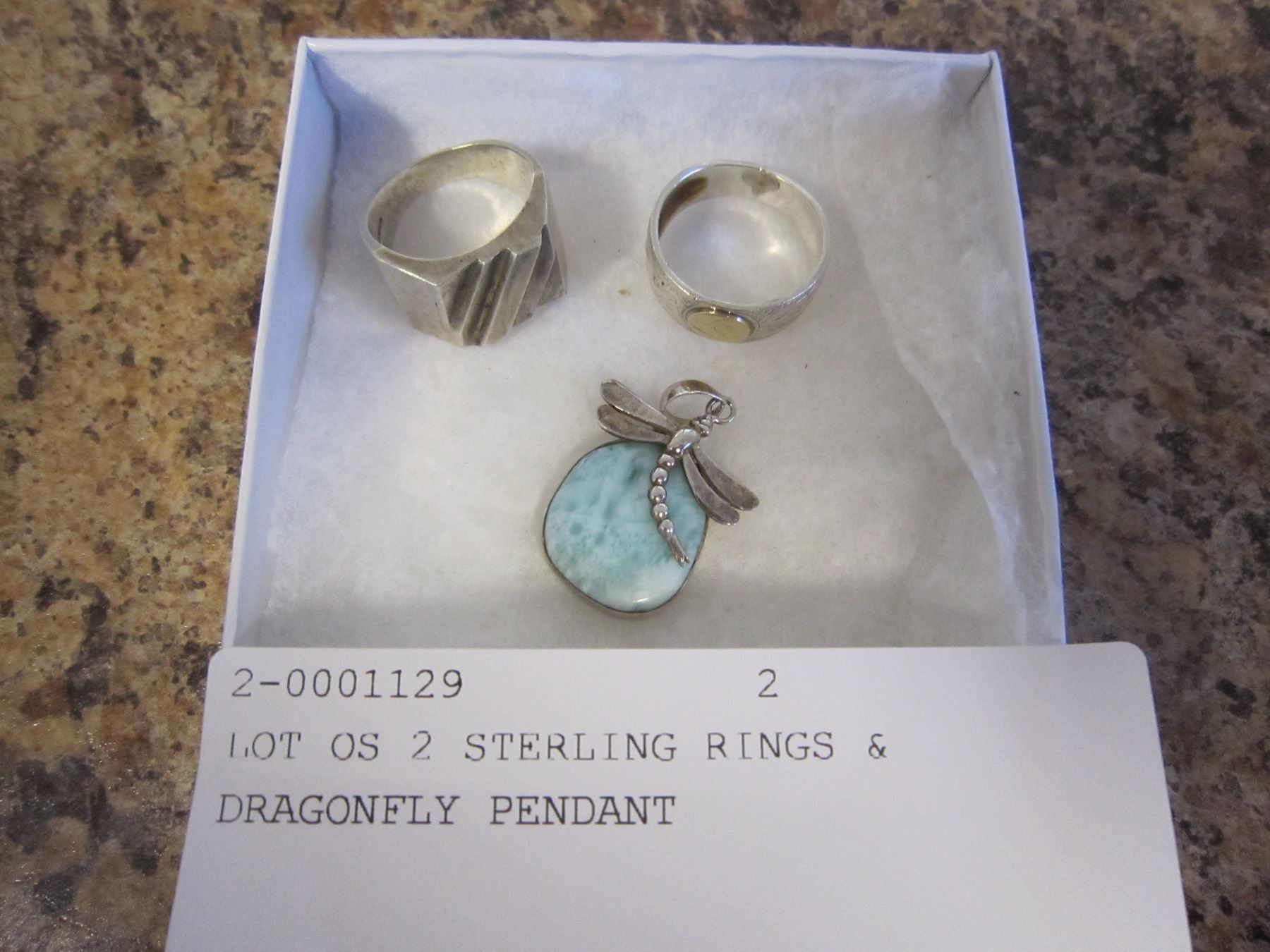 LOT OS 2 STERLING RINGS & DRAGONFLY PENDANT
