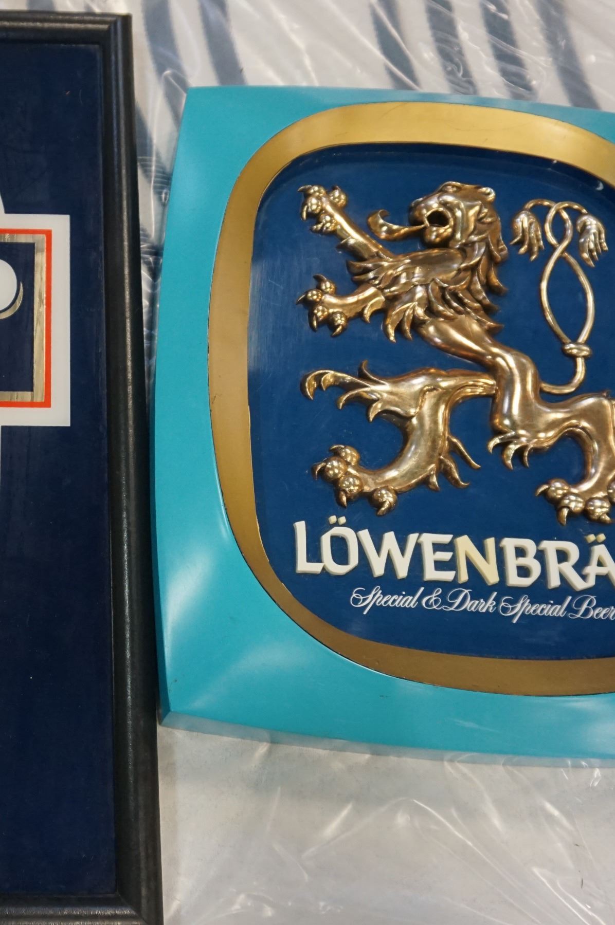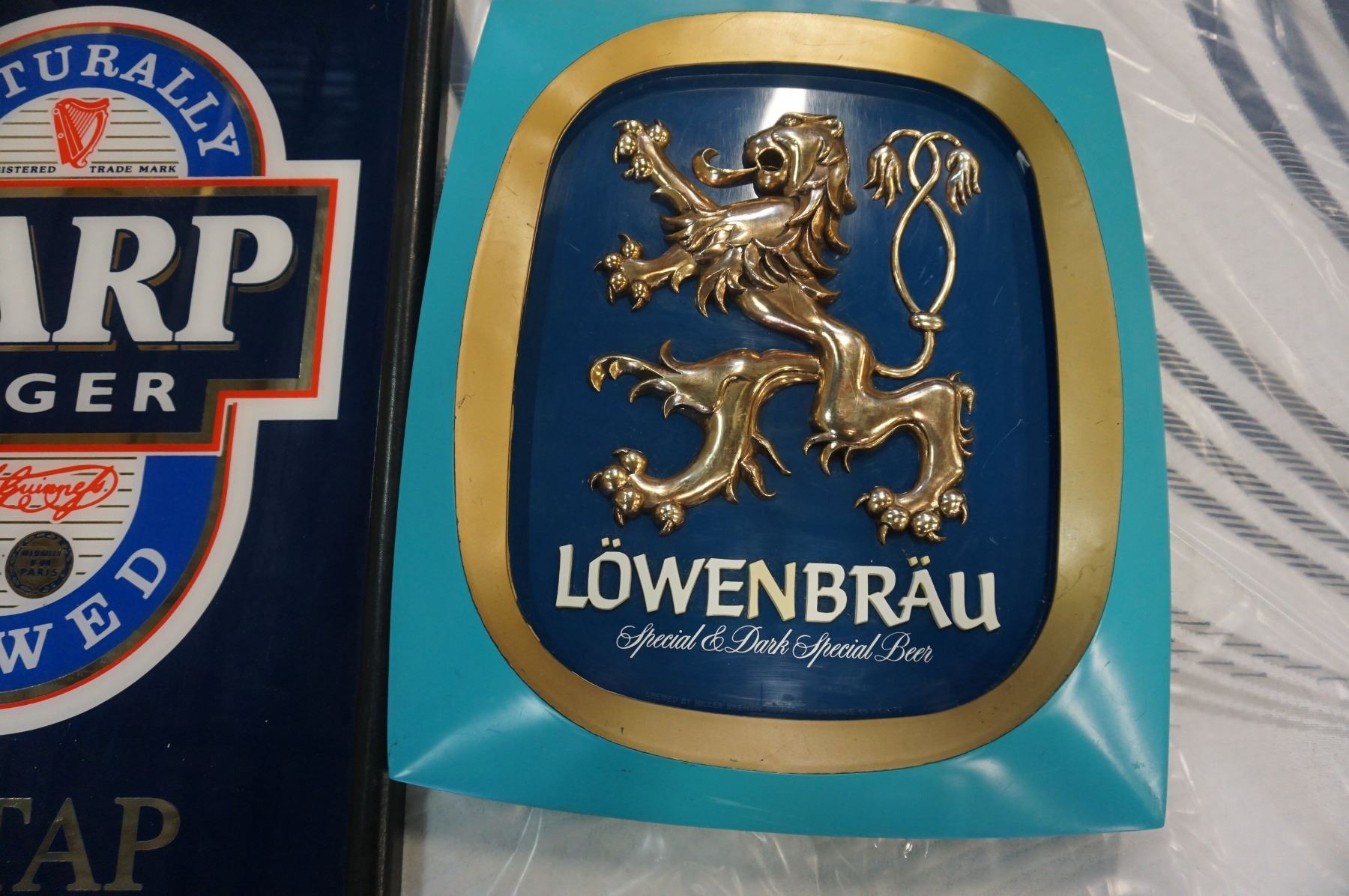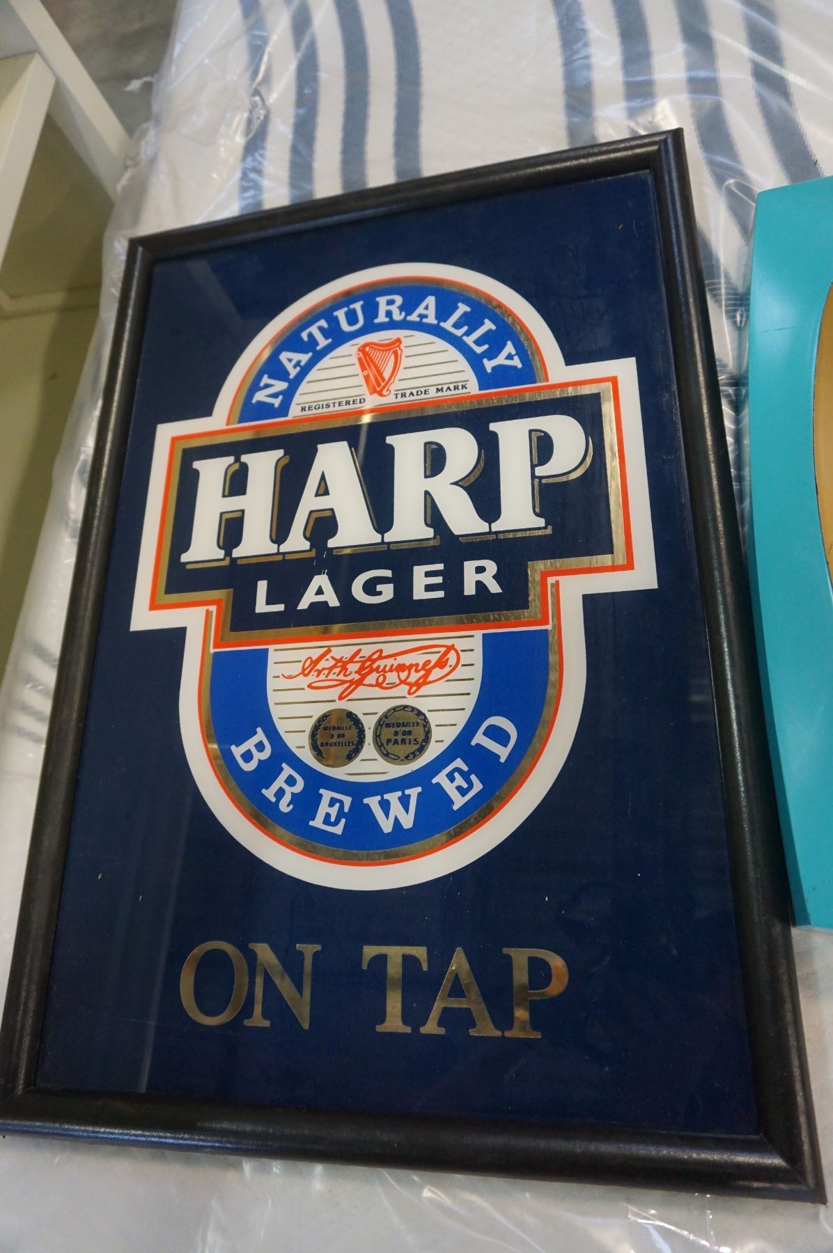 LOWEN BRAU BEER ADVERT AND HARP LAGER MIRRORED ADVERT