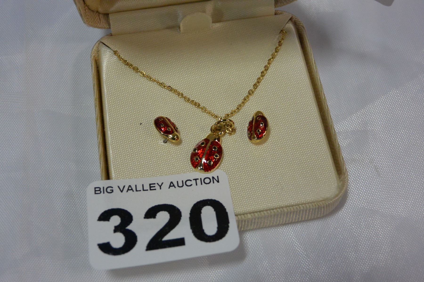 LUCKY LADY BUG NECKLACE AND EARRING SET