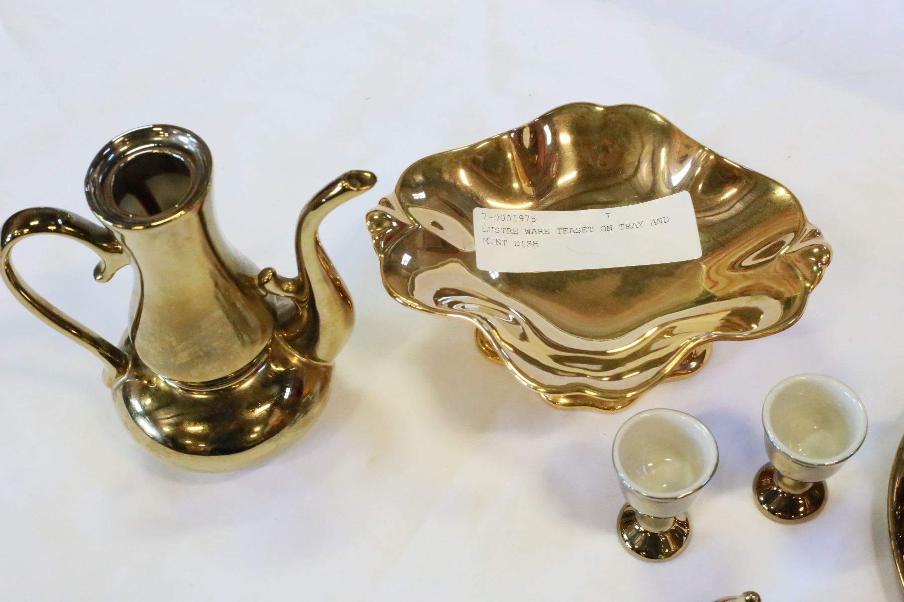 LUSTRE WARE TEASET ON TRAY AND MINT DISH