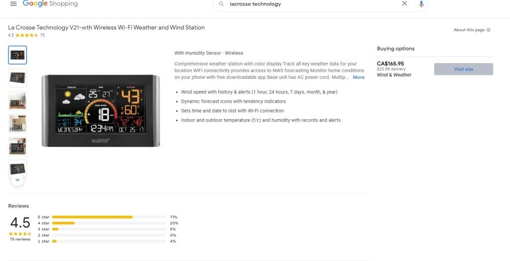 La Crosse Technology V21-wth Wireless Wi-Fi Weather and Wind Station Retail $165