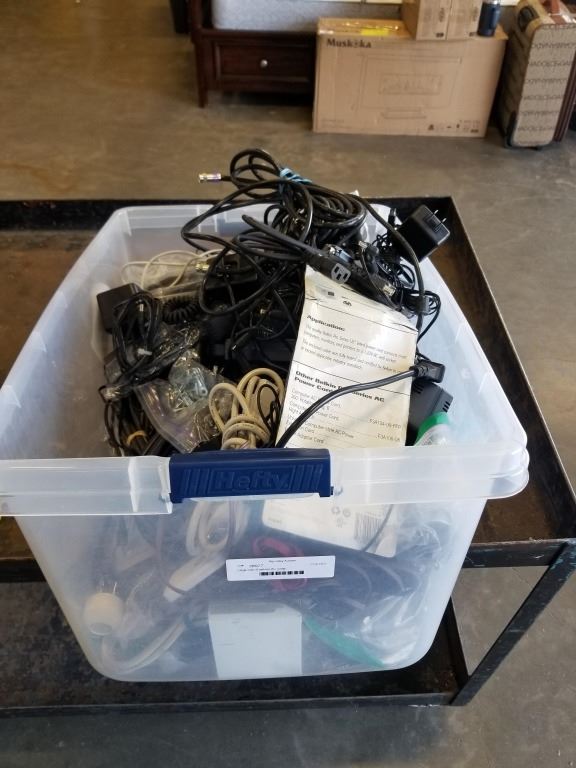 Large tote of various AC cords