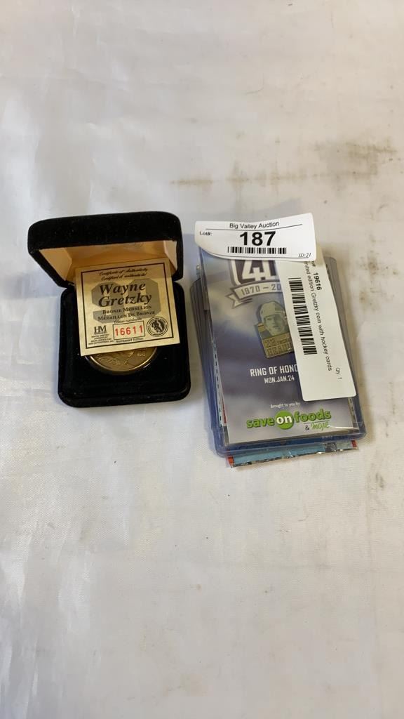 Limited edition Gretzky coin with hockey cards and ROH pin