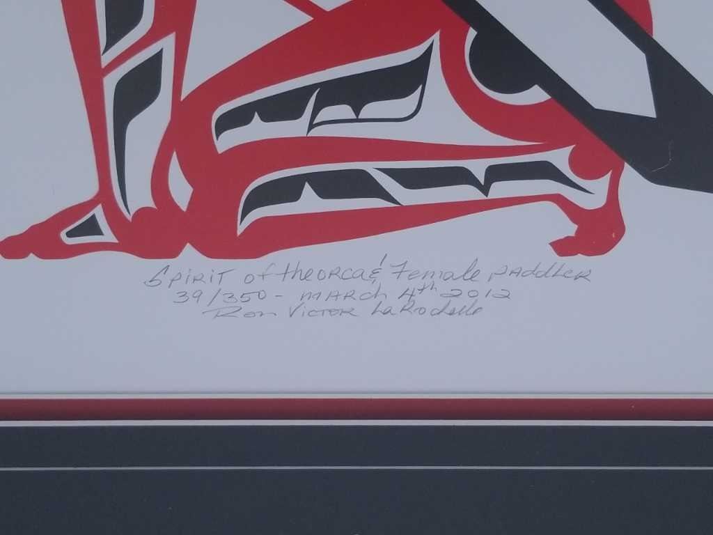 Limited edition print Spirit of the Orca and female paddler by Ron Victor La Rochelle signed and numbered