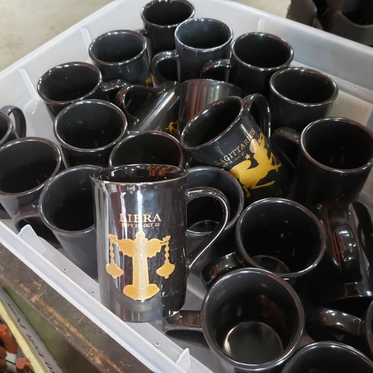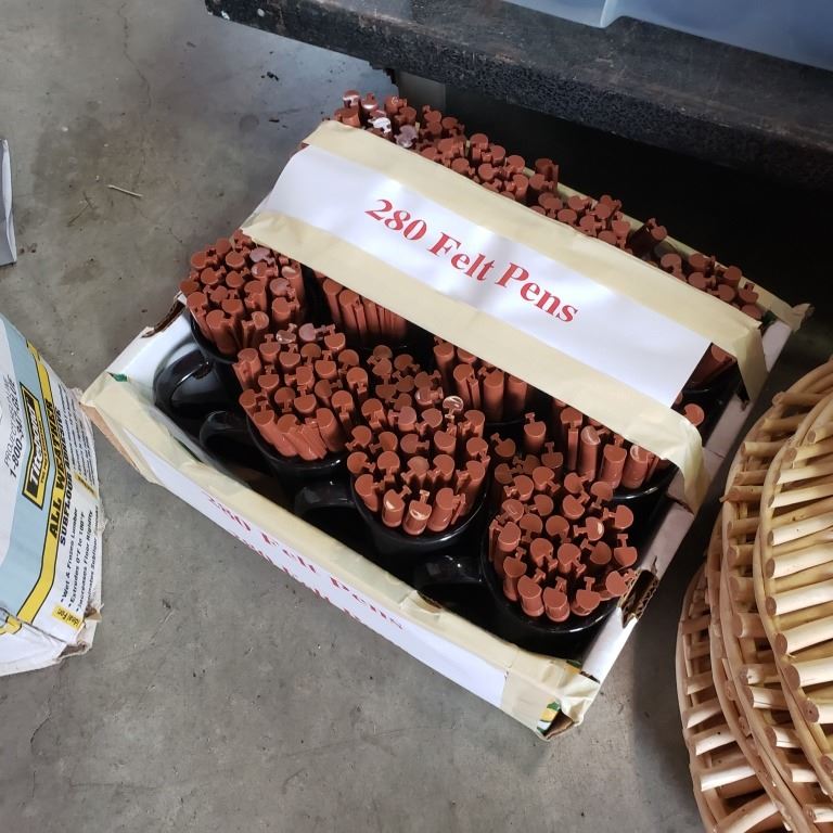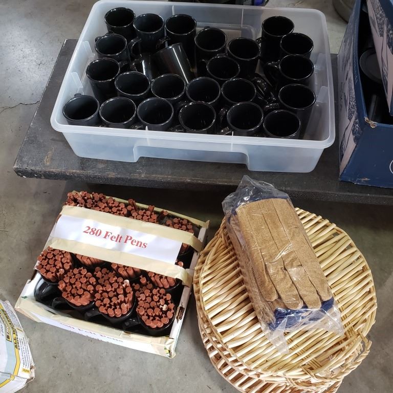 Lot of new mugs, bamboo trays and felt pens
