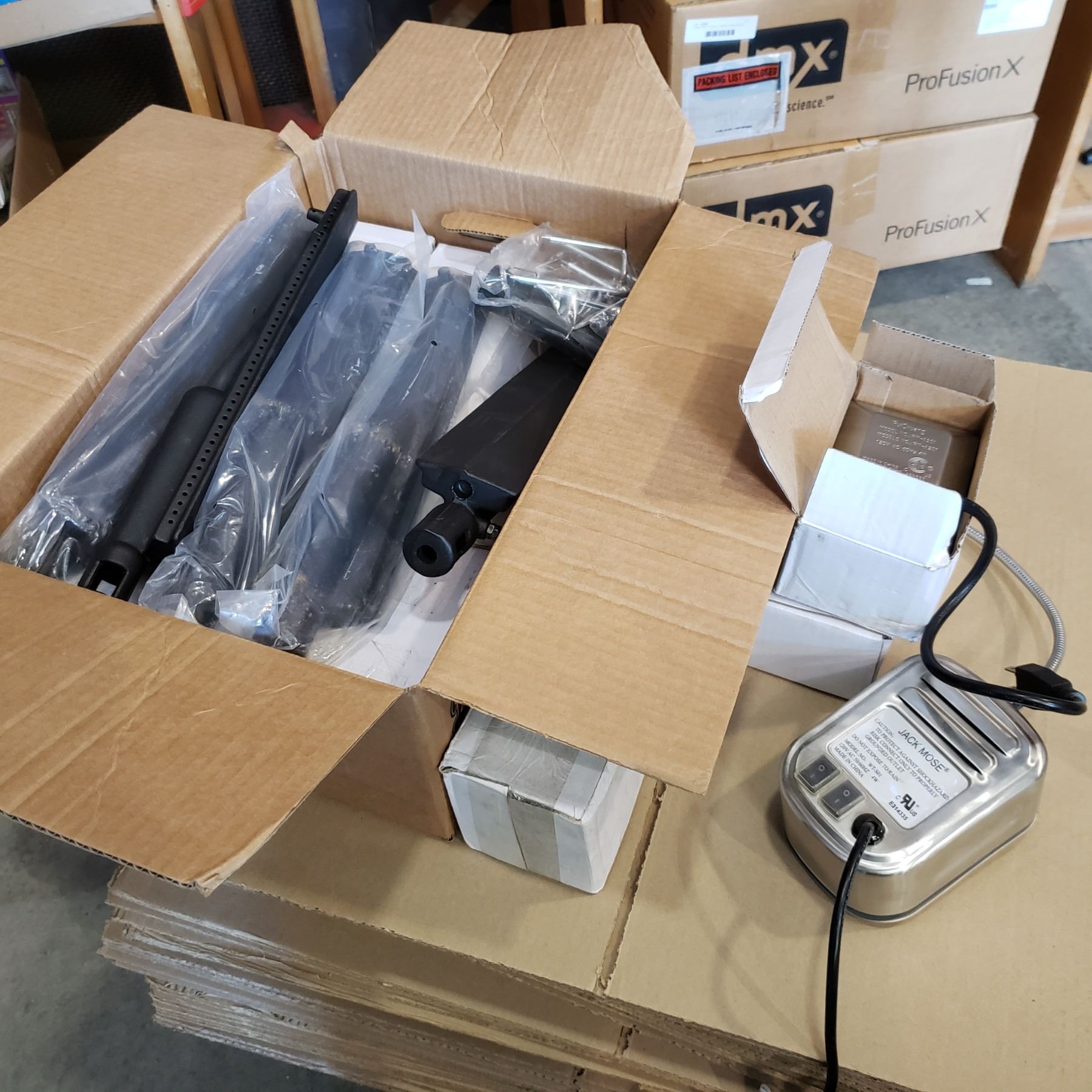 Lot of new rotisserie motors, cast iorn burners and rotisserie spits