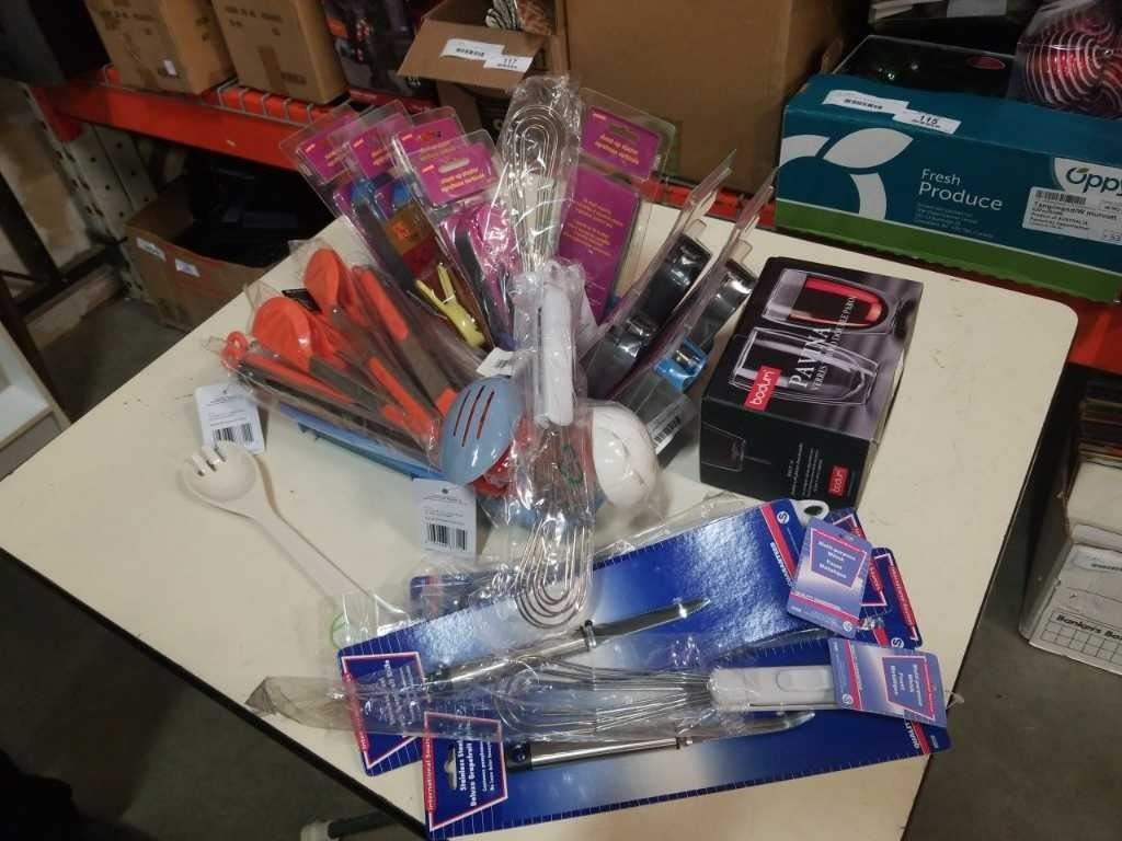 Lot of new staplers, whisk flippers, ladles tongs and more