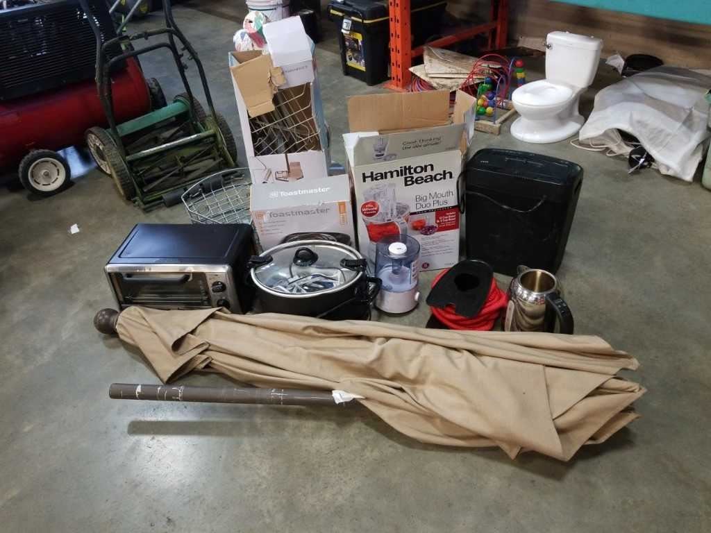 Lot of store returned appliances and umbrella