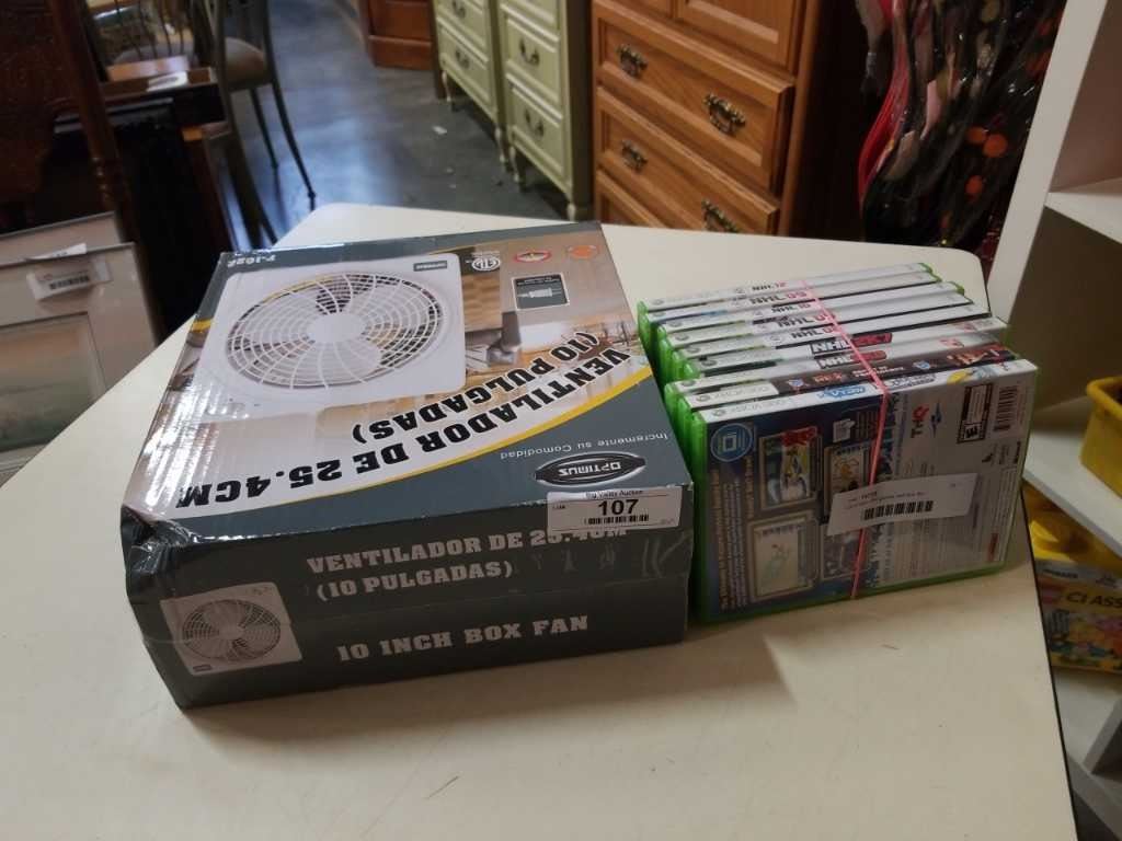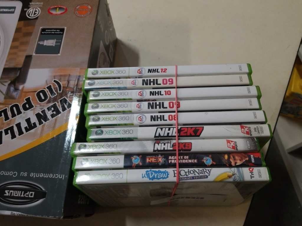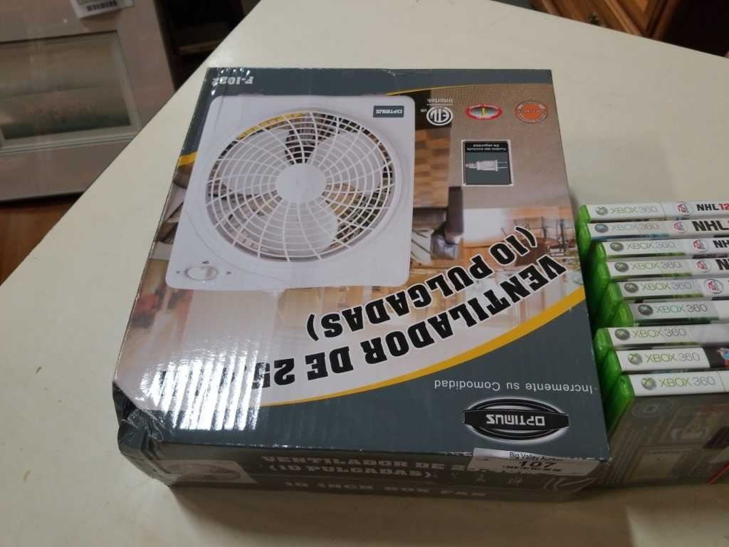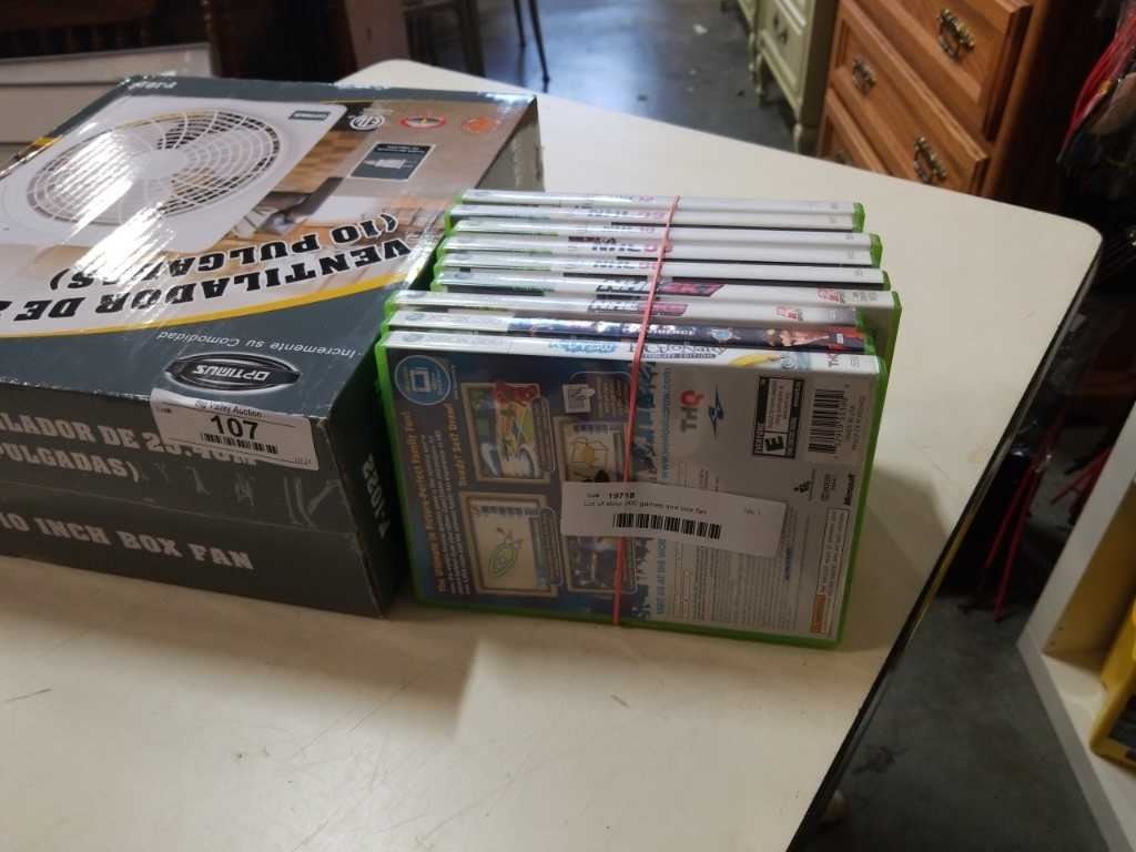 Lot of xbox 360 games and box fan