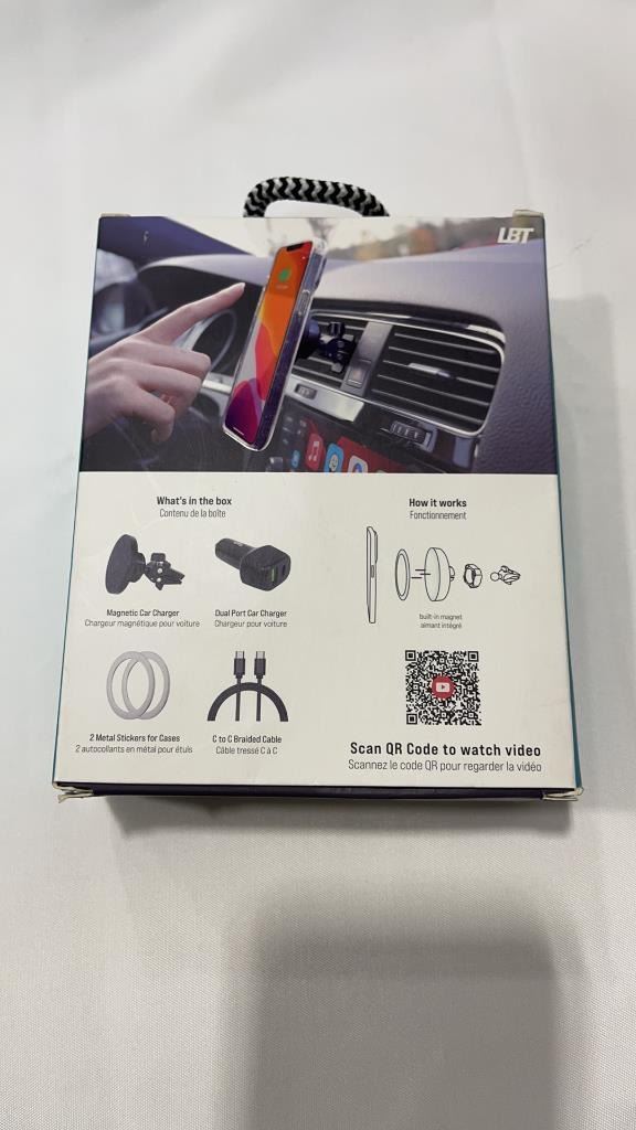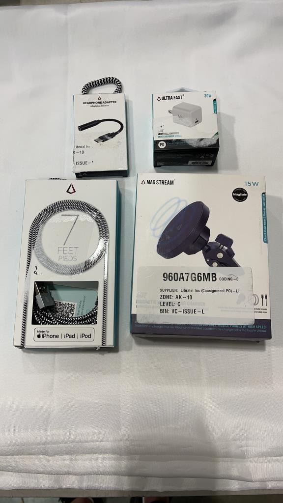 MAG STREAM MAGNETIC WIRELESS CAR CHARGER, HEADPHONE ADAPTER, 7FT USB TO LIGHTNING CABLE, AND 30W WA