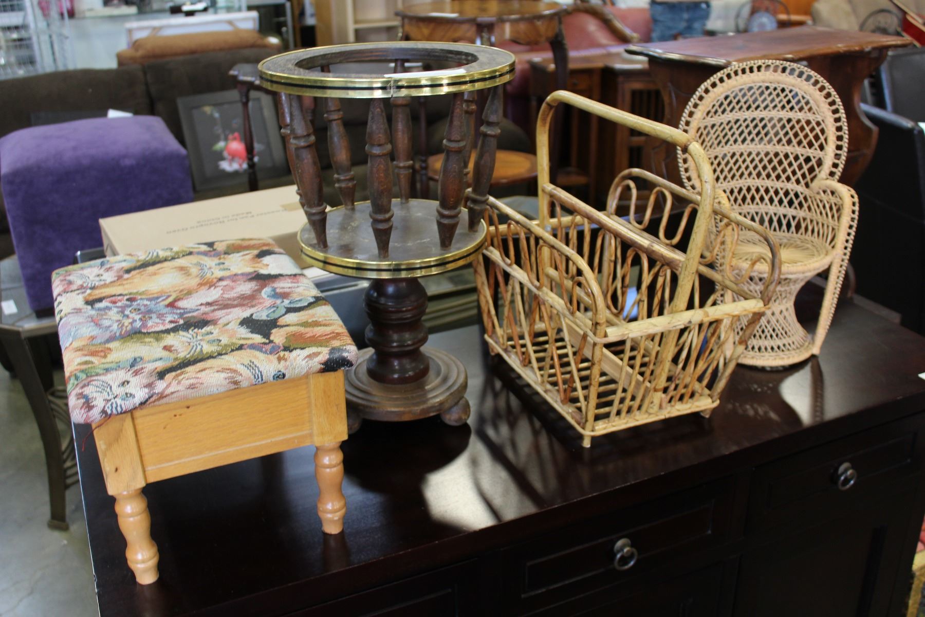 MAGAZINE RACK PLANT STAND FOOTSTOOL AND DOLL CHAIR