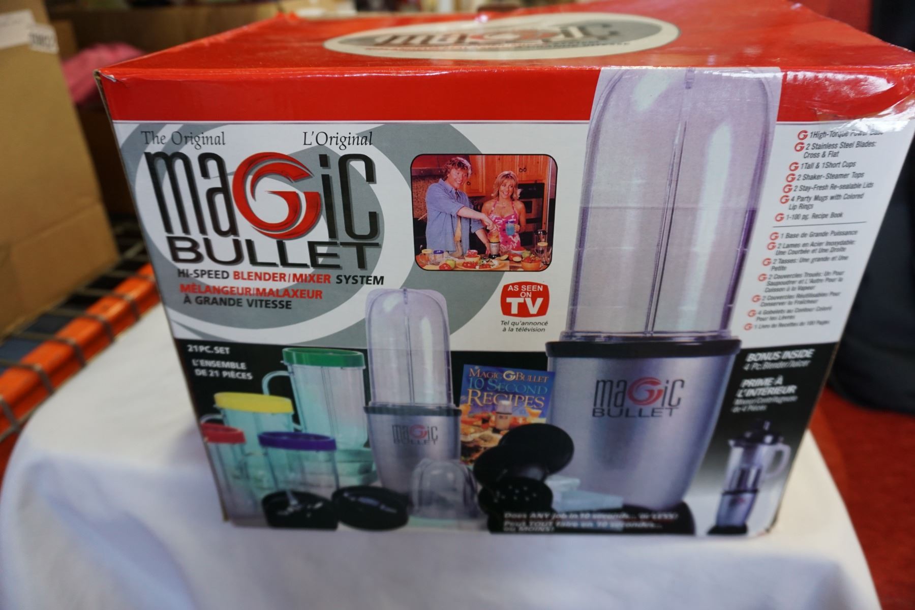 MAGIC BULLET MIX SYSTEM AND BOX OF HOUSEWARES