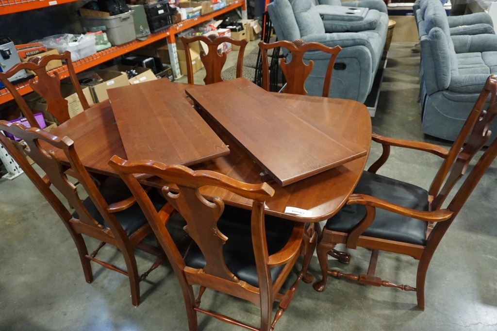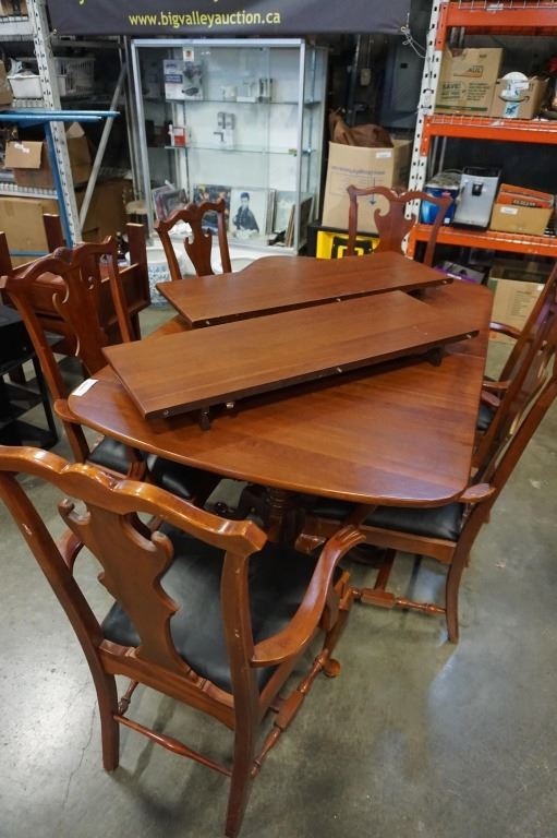 MAHOGANY DINING TABLE WITH 2 LEAFS AND 6 CHAIRS