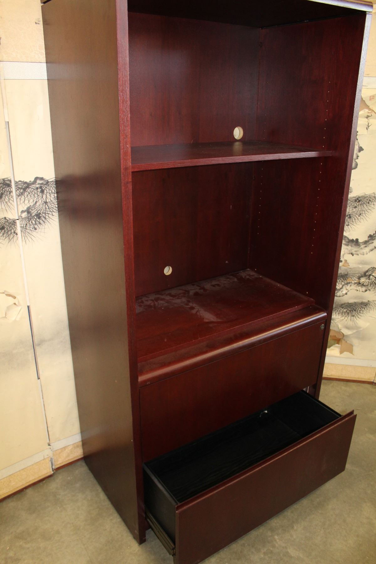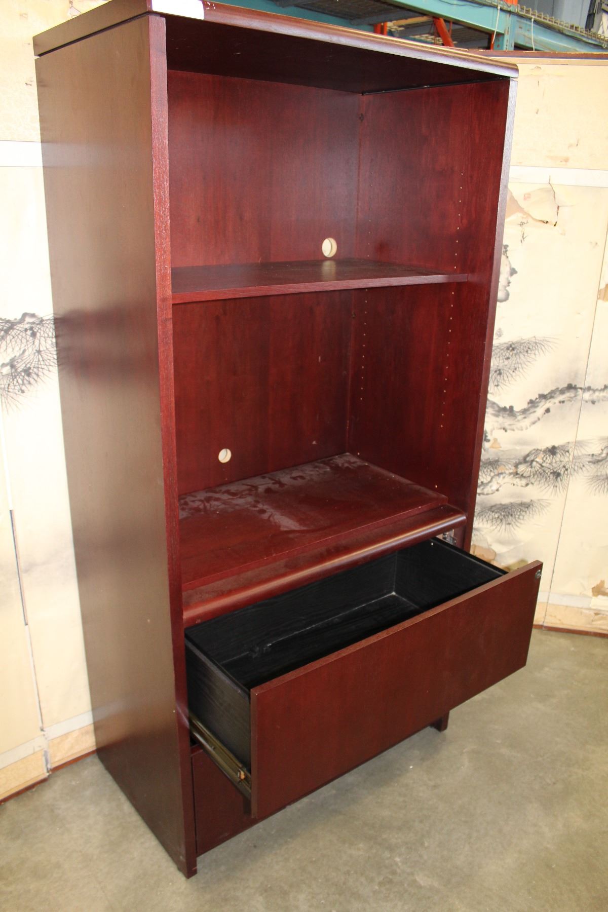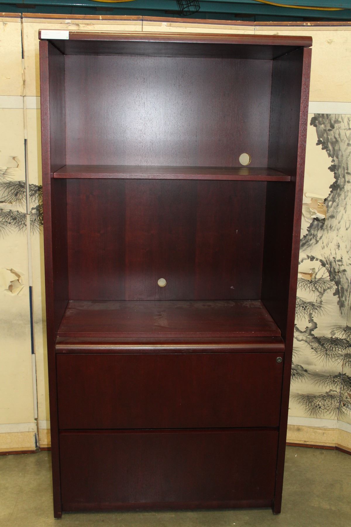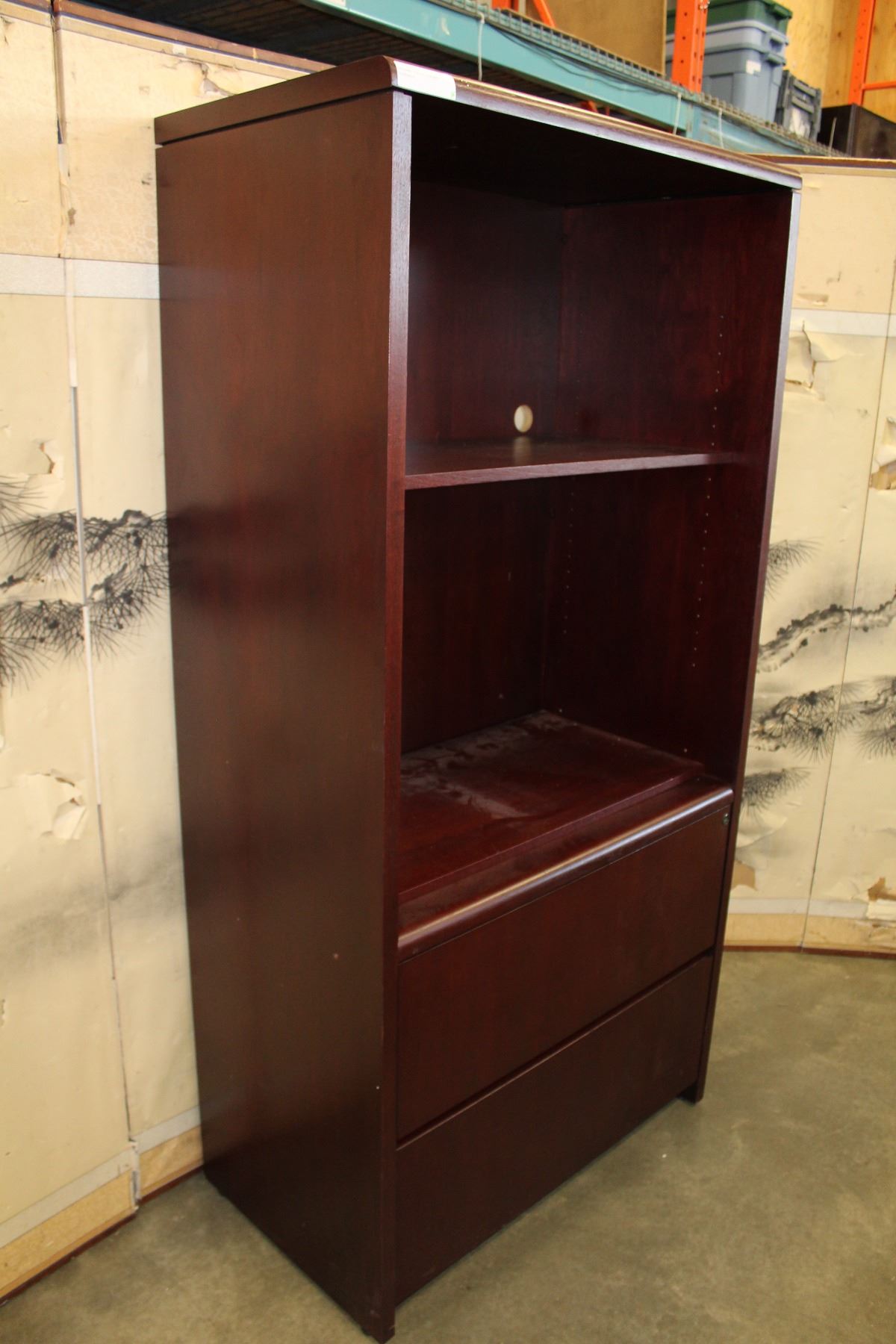 MAHOGANY FINISH 2-DRAWER BOOKSHELF