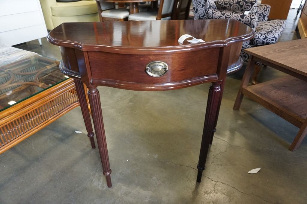 MAHOGANY FINISH DECORATIVE HALL STAND WITH ONE DRAWER