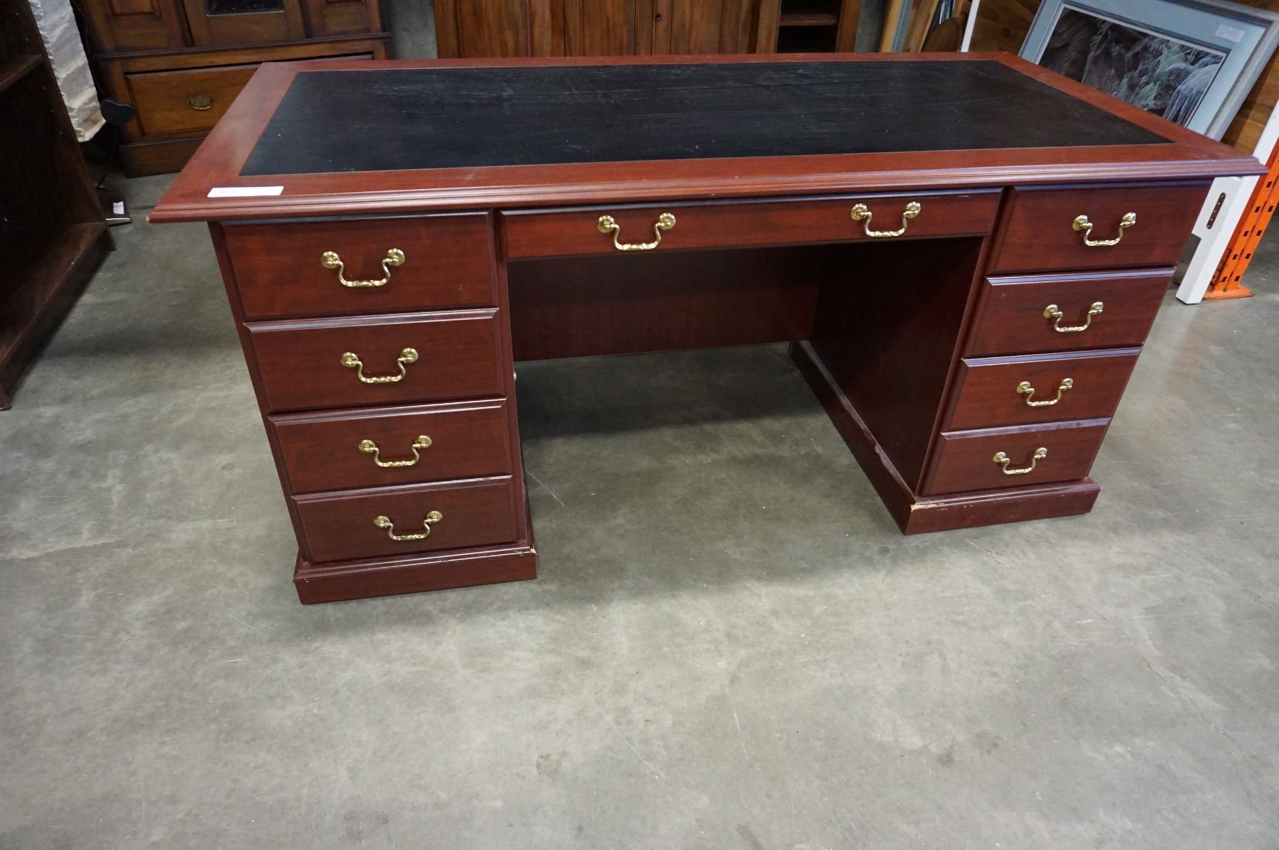 MAHOGANY FINISH DOUBLE PEDESTAL DESK