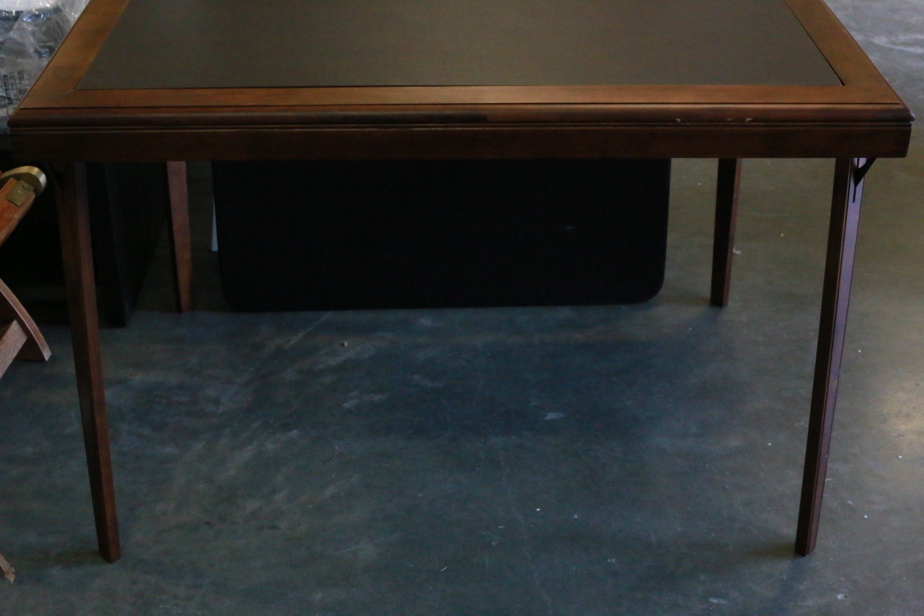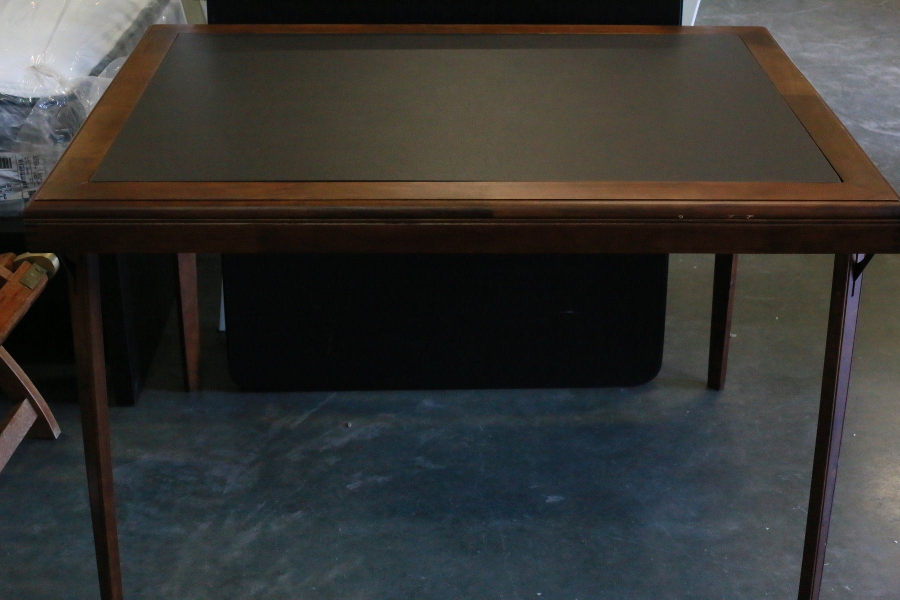 MAHOGANY FINISH FOLDING TABLE WITH LEATHER INSERT
