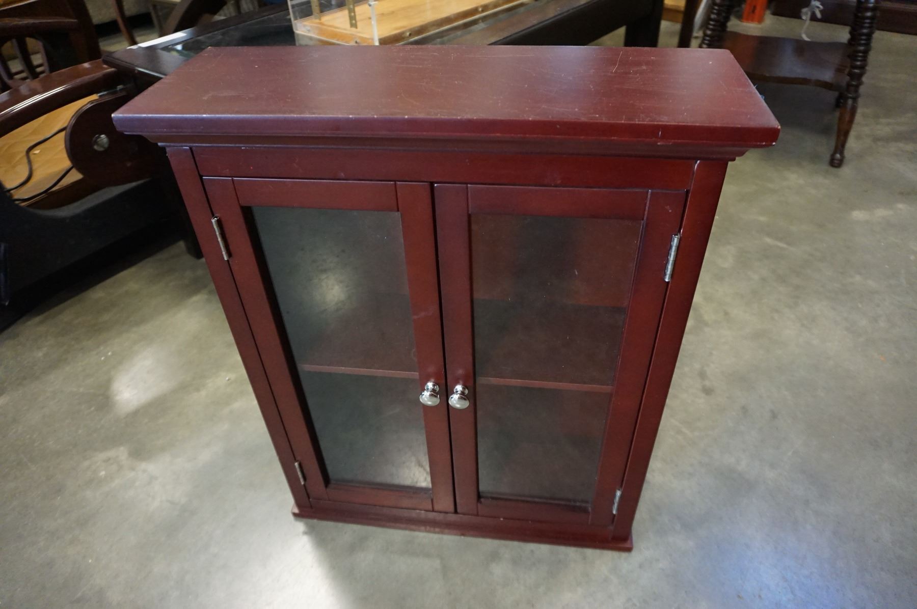 MAHOGANY FINISH GLASS DOOR CURIO CABINET WALL MOUNTED