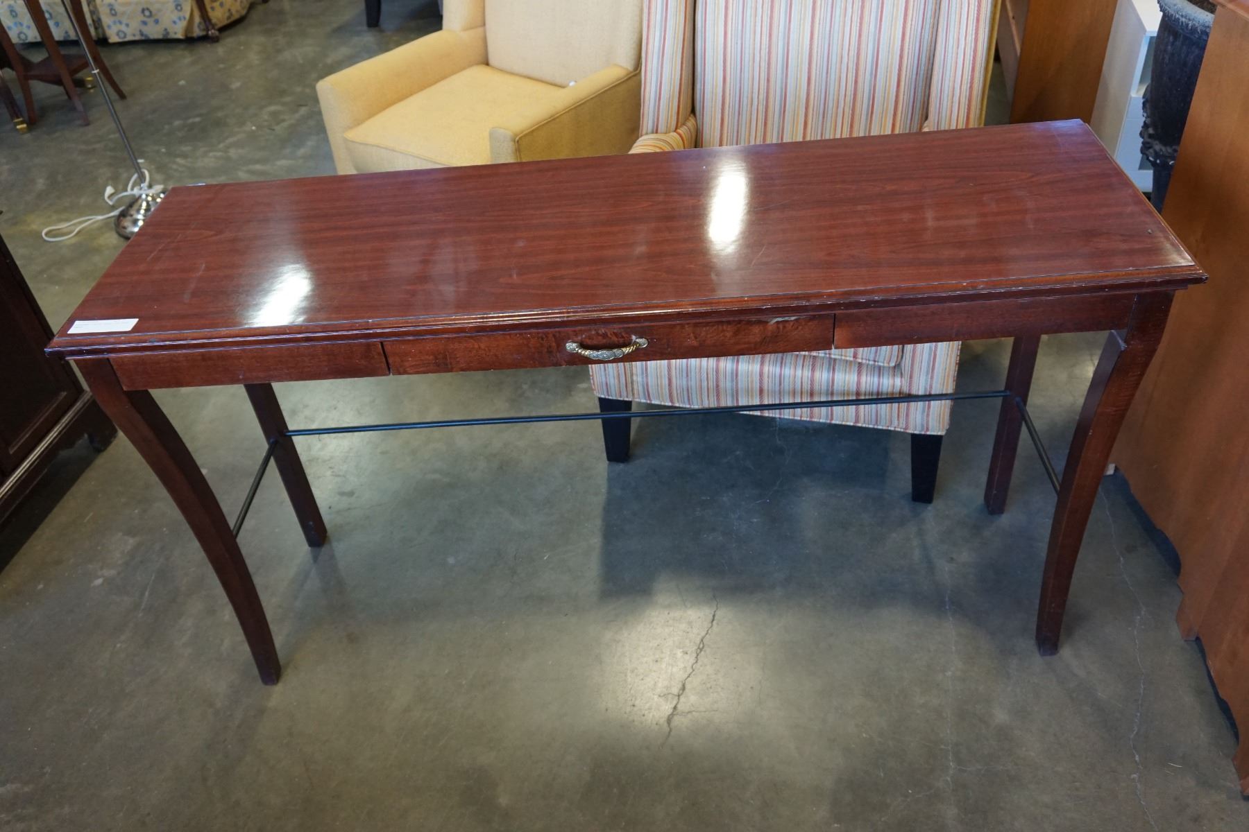 MAHOGANY FINISH GLASS TOP SOFA TABLE