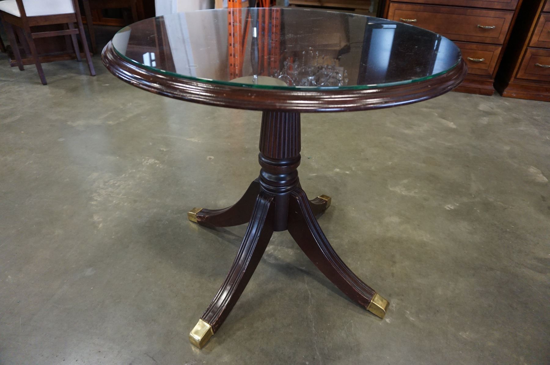 MAHOGANY GLASS TOP PARLOUR TABLE
