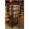 MAHOGANY ILLUMINATED DISPLAY CABINET SIDE DOOR OPENING