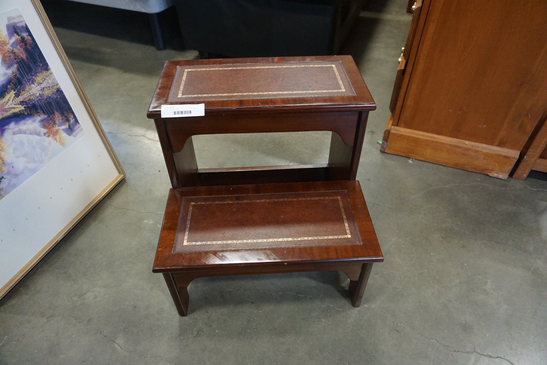 MAHOAGANY LEATHER INSERT BEDSIDE STAIRS