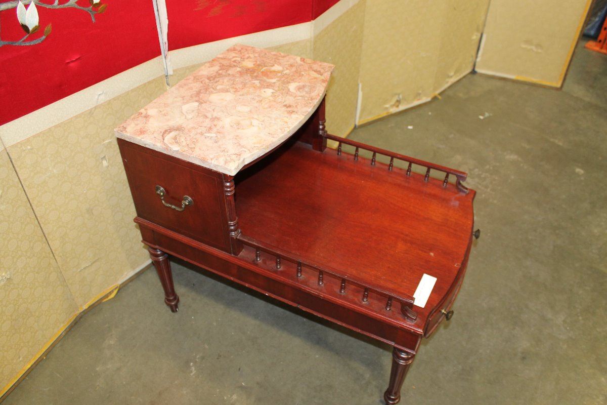 MAHOGANY MARBLE TOP STEP ENDTABLE