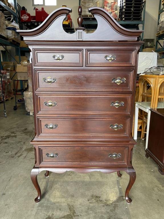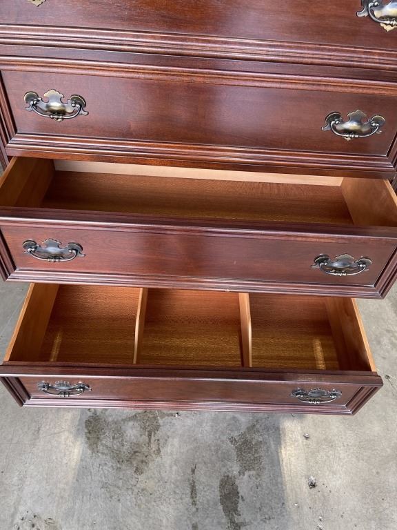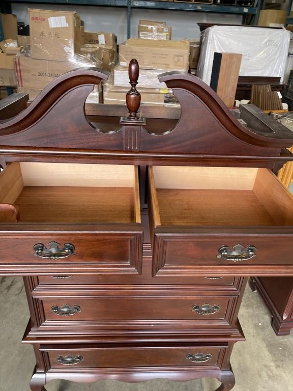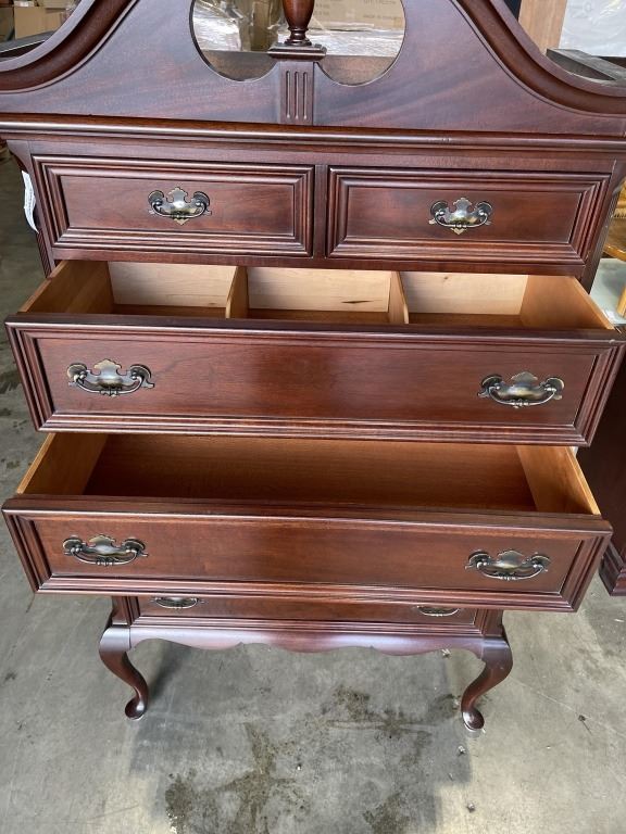 MAHOGANY QUEEN ANE DRESSER WITH GALLERY TOP