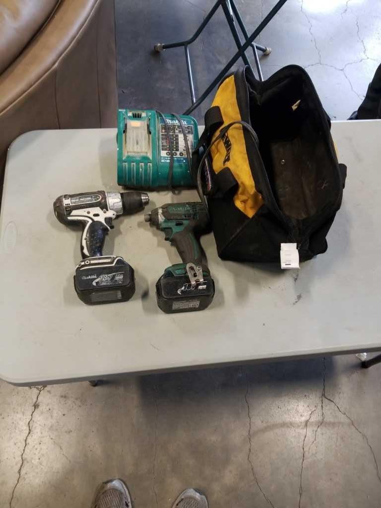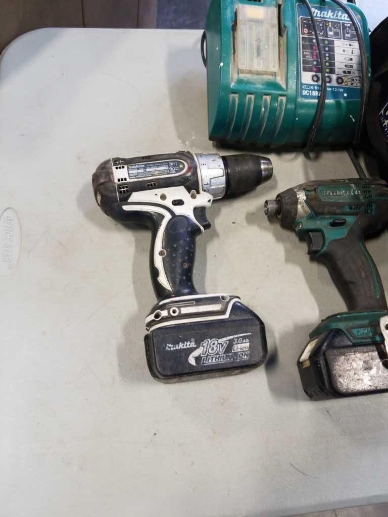 MAKITA 18V CORDLESS TOOL SET INCLUDES IMPACT GUN, DRILL, 2 BATTERIES AND CHARGER - TESTED WORKING