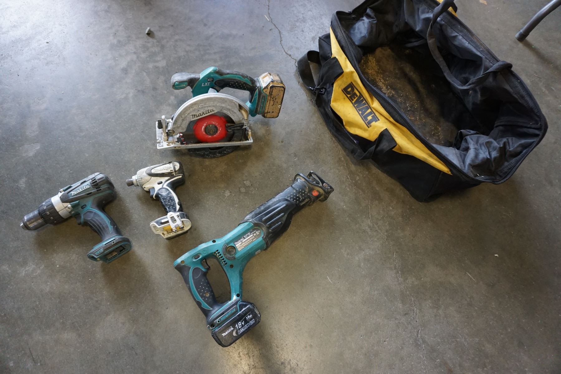 MAKITA 4 PIECE 18V CORDLESS TOOL SET W/ 2 BATTERIES, NO CHARGER - TESTED AND WORKING
