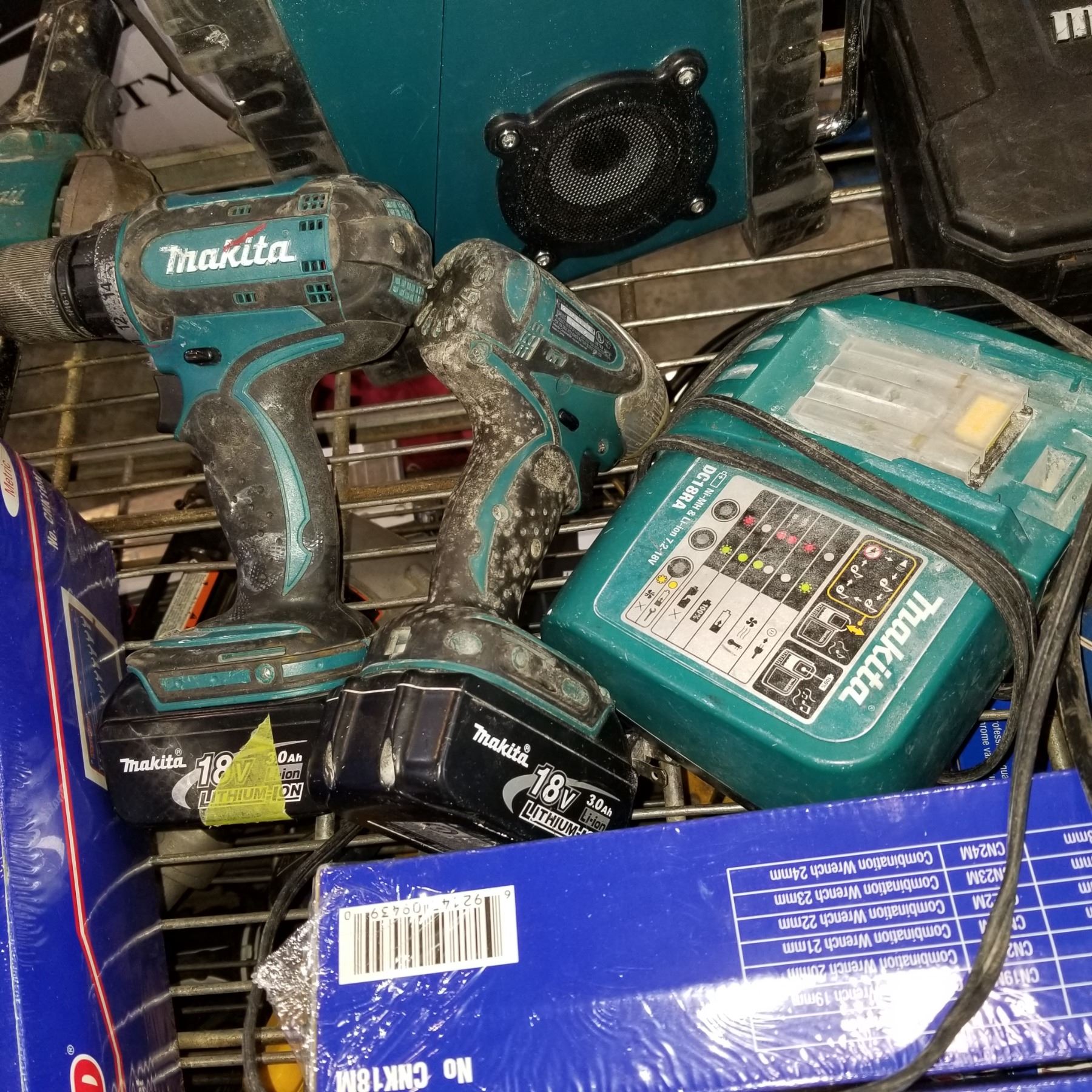 MAKITA CORDLESS 18V IMPACT GUN, DRILL, AND CHARGER